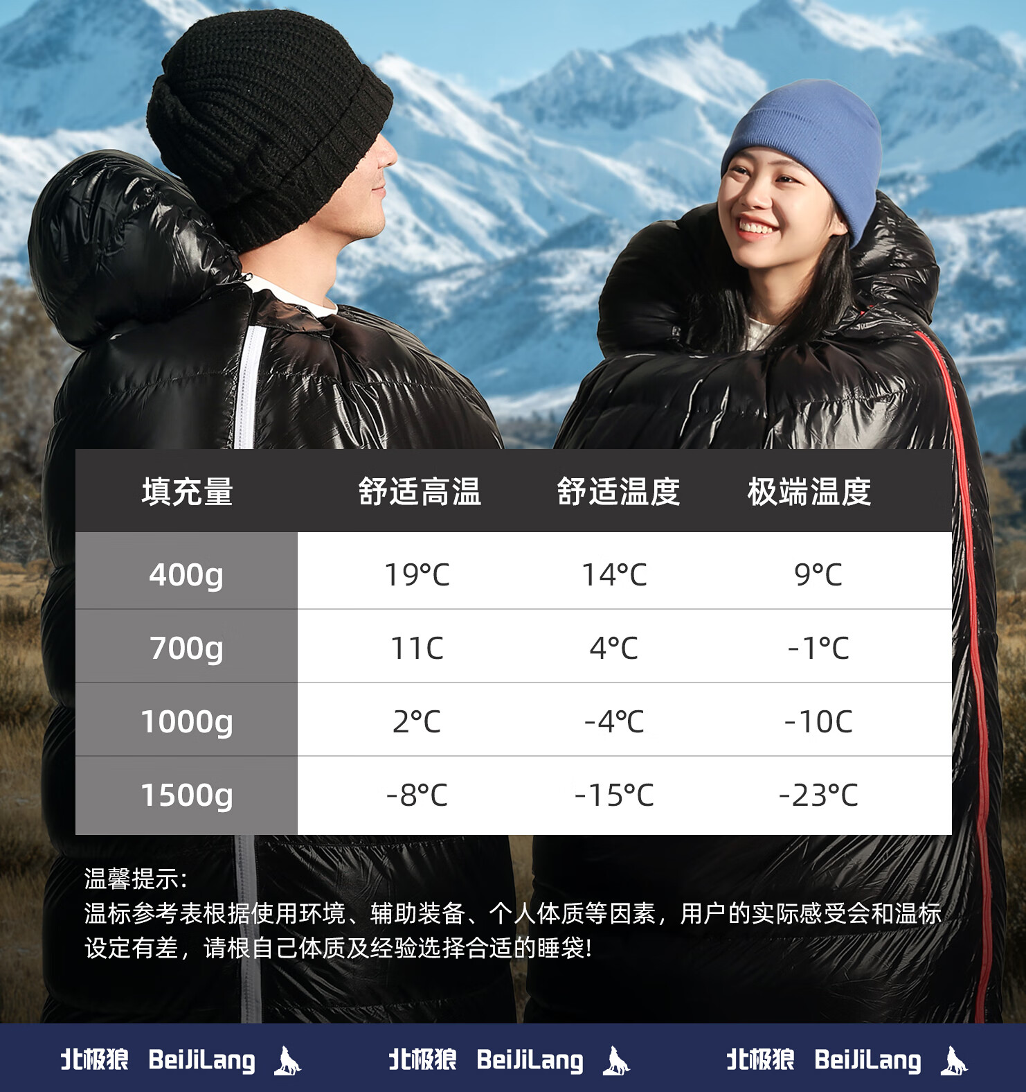 北极狼(BeiJiLang)鹅绒羽绒睡袋彩蝶系列户外极限露营可拼接式羽绒睡袋成人信封式 黑色-充绒1000G【零下10℃-2℃】高蓬松鸭毛绒