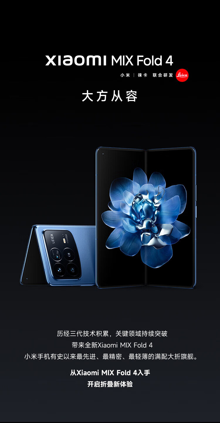 小米(MI)展机MIXFold4折叠屏 5G手机Fold3 徕卡光学卫星通信国行正品大屏 MixFold4【龙胆蓝】 16G+512G 赠运费险|详情咨询客服