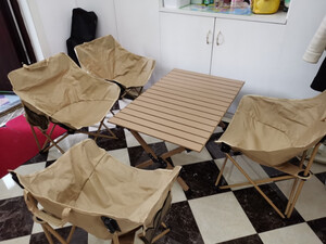 月亮椅子坐着蛮舒服的,很舒适的平躺着,然后桌子质量也蛮好的,方便收纳,有收纳袋,做工完好,没有发现瑕疵,客服服务态度也蛮好的,下次还会再来选择的。品质不错哦