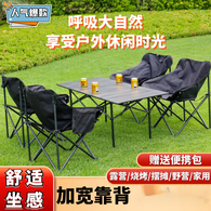 XMSJ一桌四椅户外套装便携式可折叠蛋卷桌露营多功能写生桌椅套装装备 【ins四人套装】95黑碳钢折叠桌+四把椅子