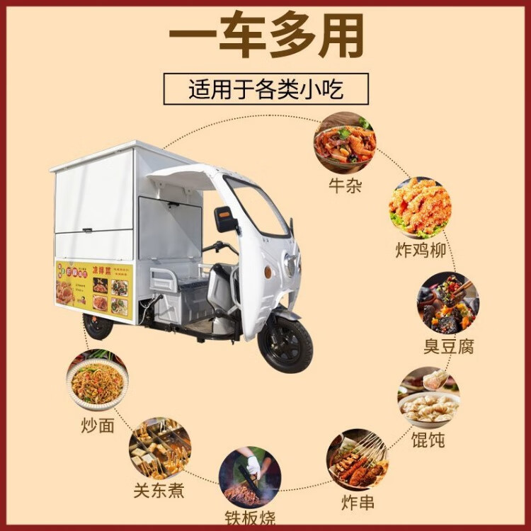 定制电动三轮车多功能移动车摆摊三轮车快餐炸串卤菜早点夜市小吃 任意定制 联系客服