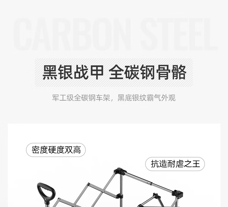 疆屿户外露营车折叠小推车旅行营地野营野餐摆摊儿童可躺野餐聚拢车 黑色【聚拢拓野款】全钢车架