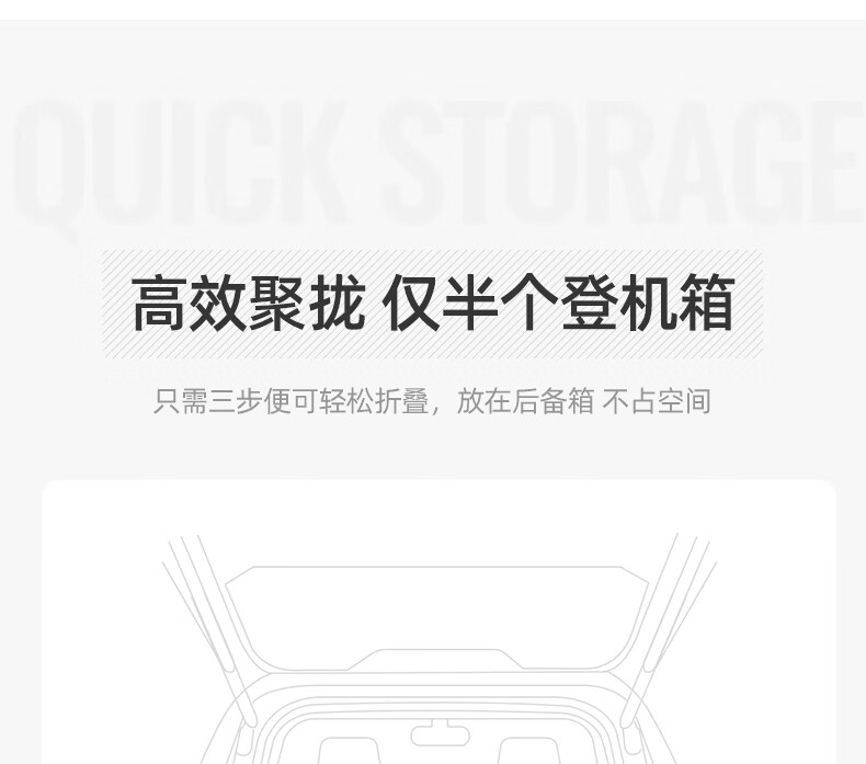 已经使用了一段时间了,真的是后悔没有早点买,质量和做工都非常的不错,大品牌的品质有保证,收纳起来非常的简单,收纳后体积小巧不会很占地方,可以很轻松的放进后备箱,而且容量超级大,特别的实用,总之非常满意的一次购物!