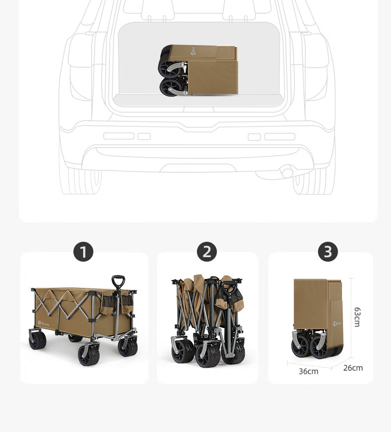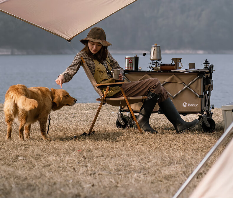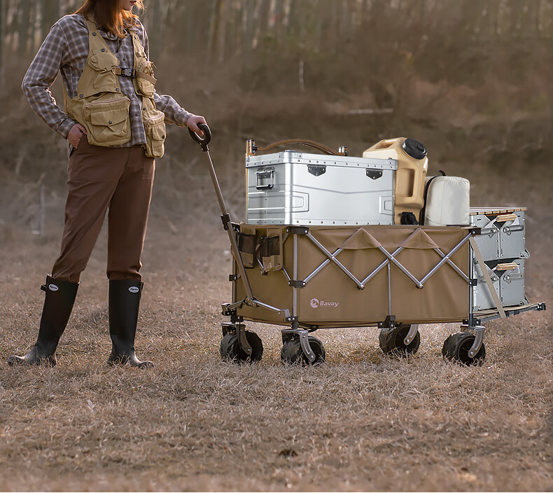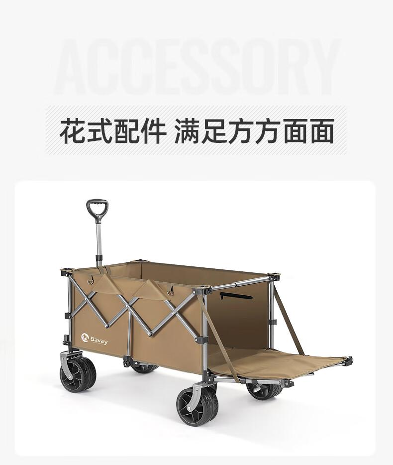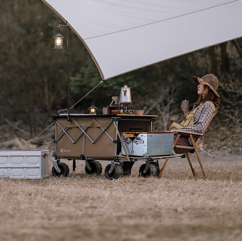 北欢 Bavay加大款户外野营拖车可折叠露营推车野餐营地小拉车S01 400L 大有可为棕色