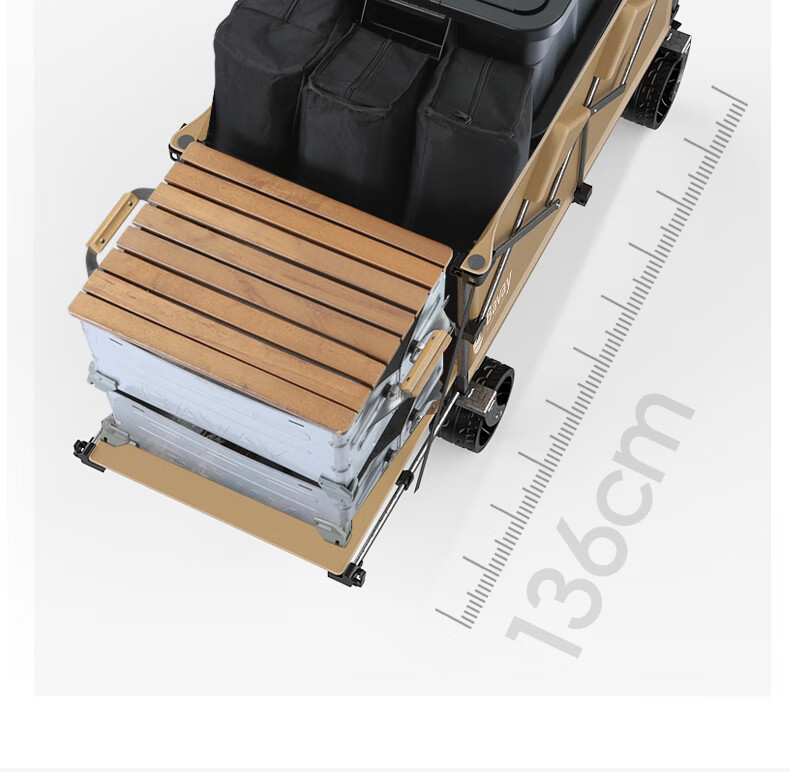 收纳小巧,展开后空间超大,放下车尾挡板后,空间是我见到过目前最大的露营车了,适合装备多且偏长偏大的装备,拖拉起来非常顺滑,很满意!期待去露营!