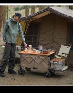 北欢bavay营地露营推车户外野餐便携pro折叠拉杆车野营手拉拖车F02 420L 米色pro+铝合金桌板