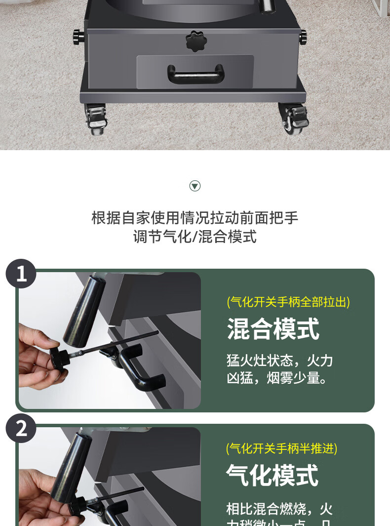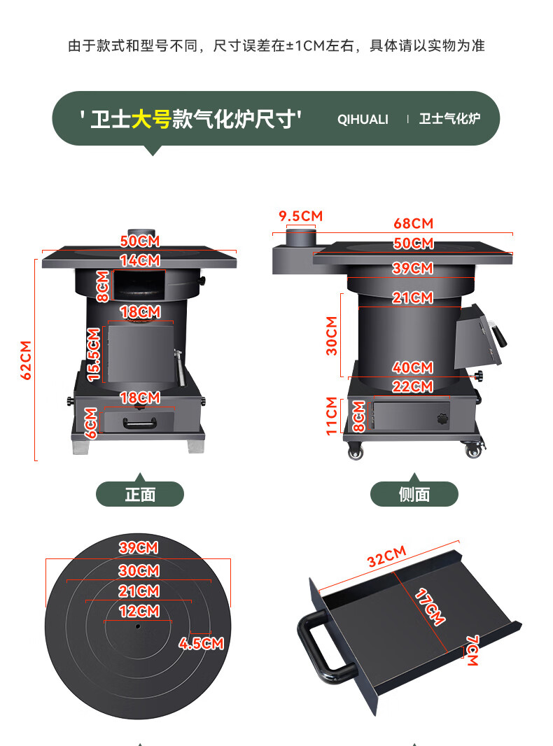 烽点柴火灶气化炉子室内无烟家用农村户外烧木柴两用移动铸铁大锅台 50大号卫士气化炉带轮++2米管配