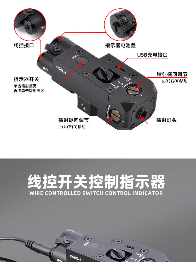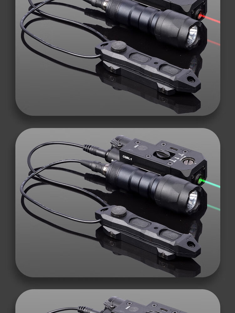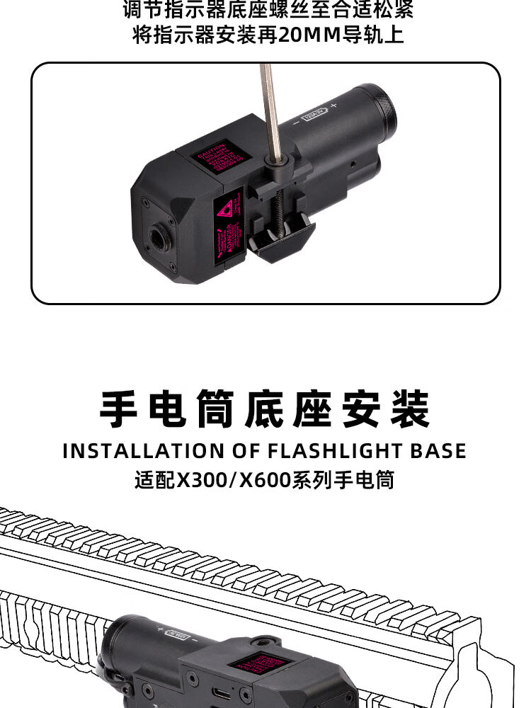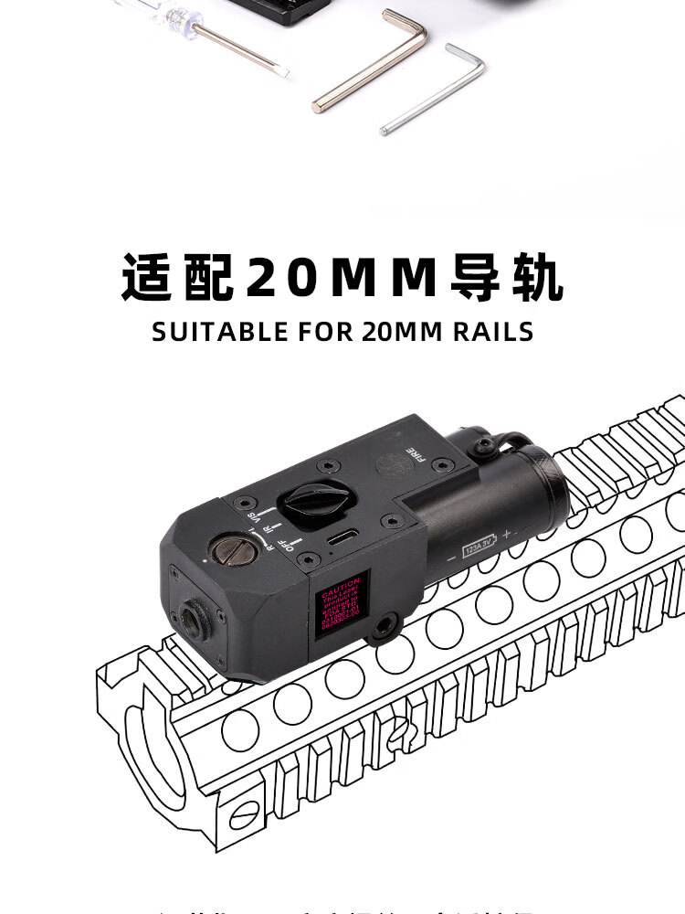 CQBL红绿镭射归零战术盒激光可调鼠尾战术手电20mm合金尼龙指示器 MINI-A2红+M600+双控鼠尾