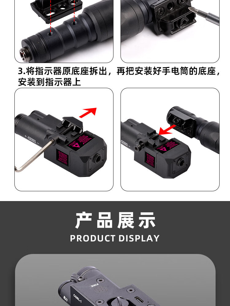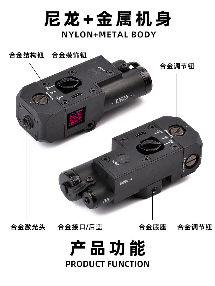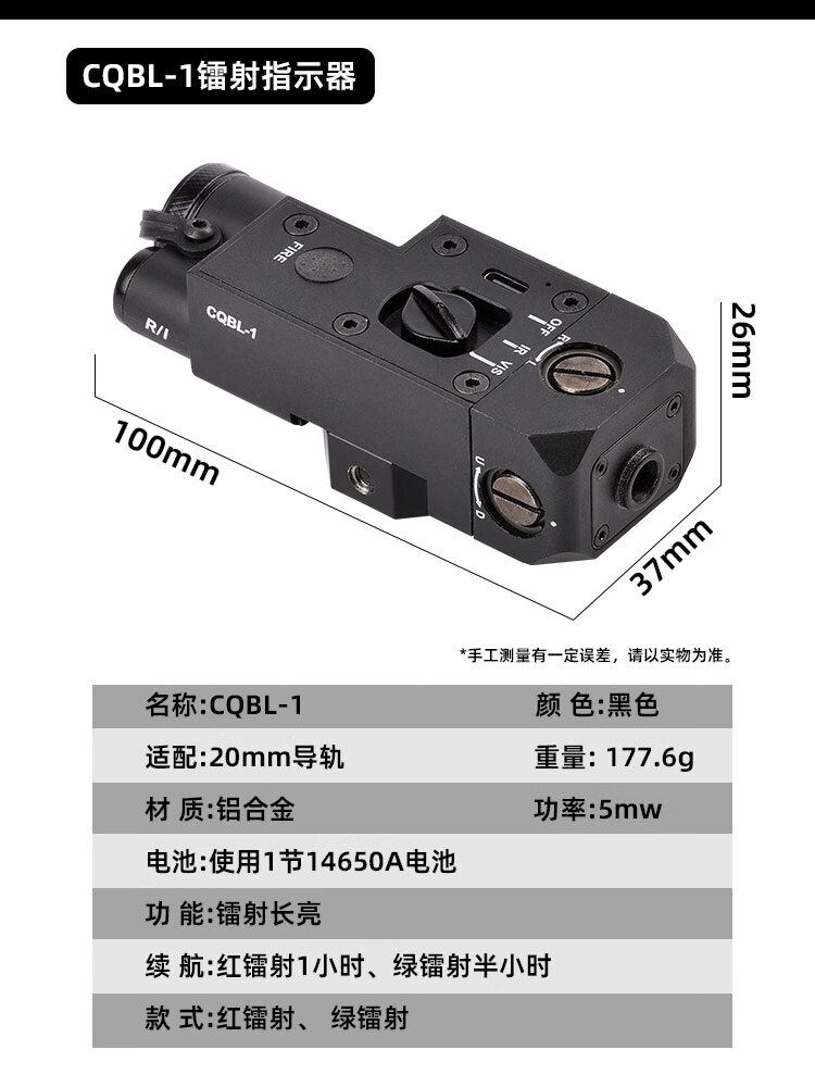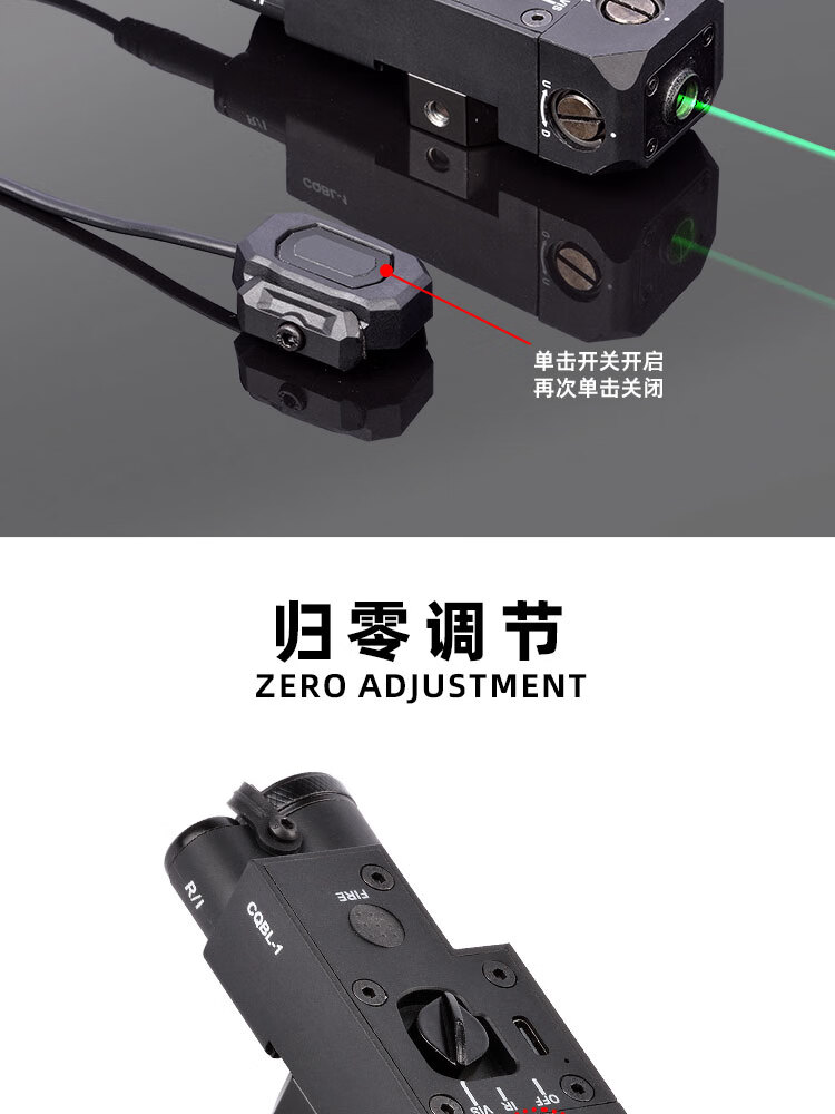 CQBL红绿镭射归零战术盒激光可调鼠尾战术手电20mm合金尼龙指示器 MINI-A2红镭射【可调节带鼠尾】