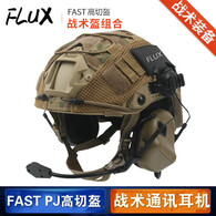 FAST PJ 高切盔通讯耳机耳麦套装军迷CS特种快速水际版战术头盔 黑色头盔+黑CP盔罩+通讯耳机