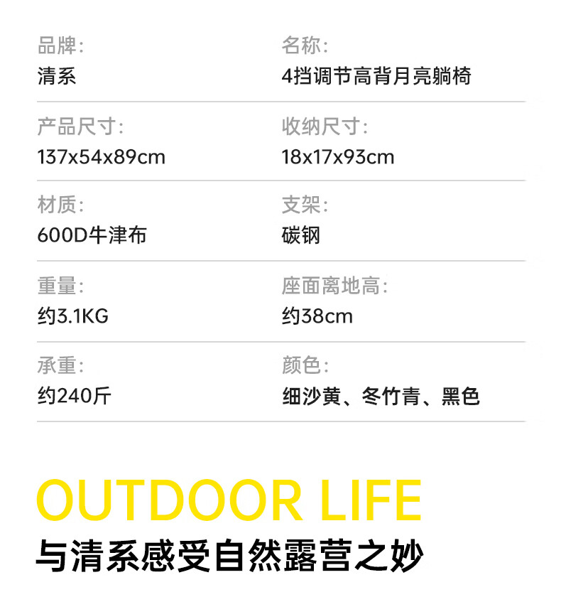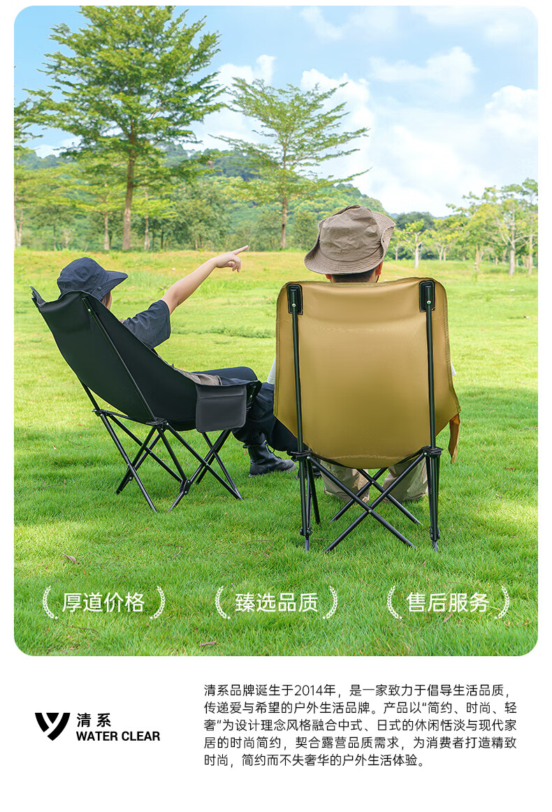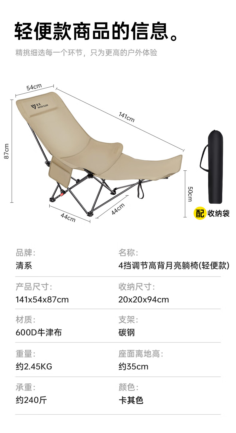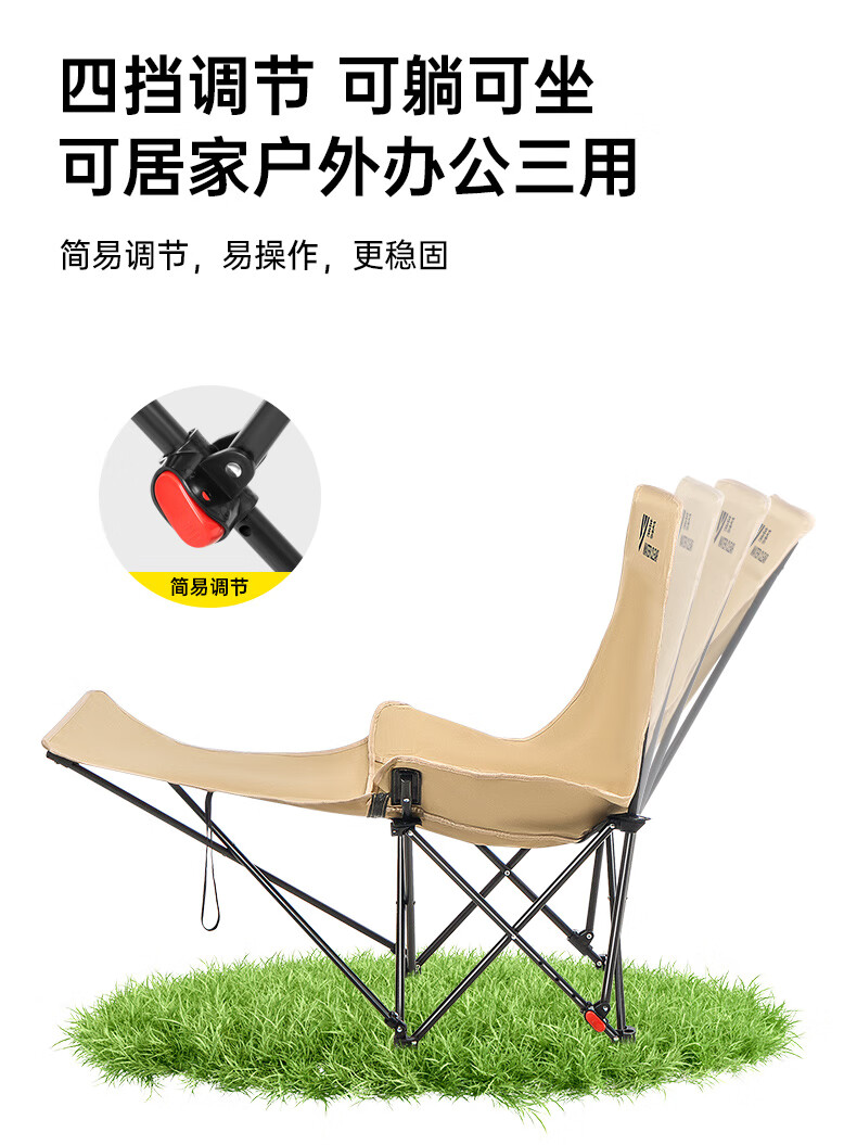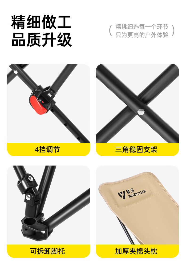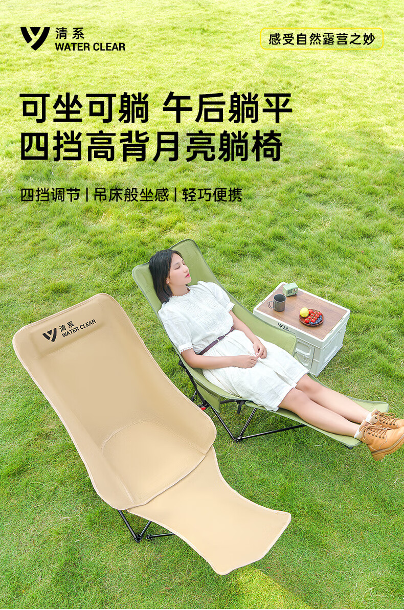 清系户外折叠椅露营沙滩躺椅钓鱼椅四档折叠家用商用便携可折叠高背凳 【4档调节/坐躺两用】卡其色