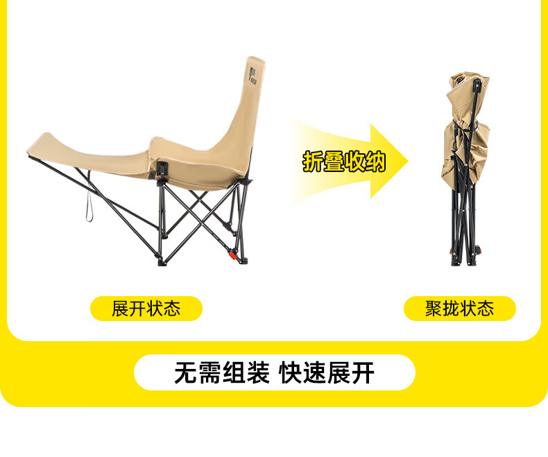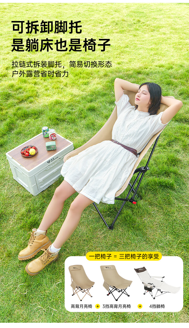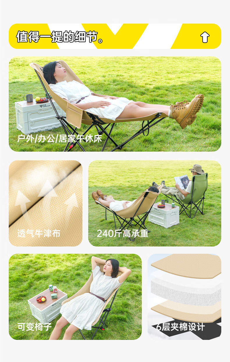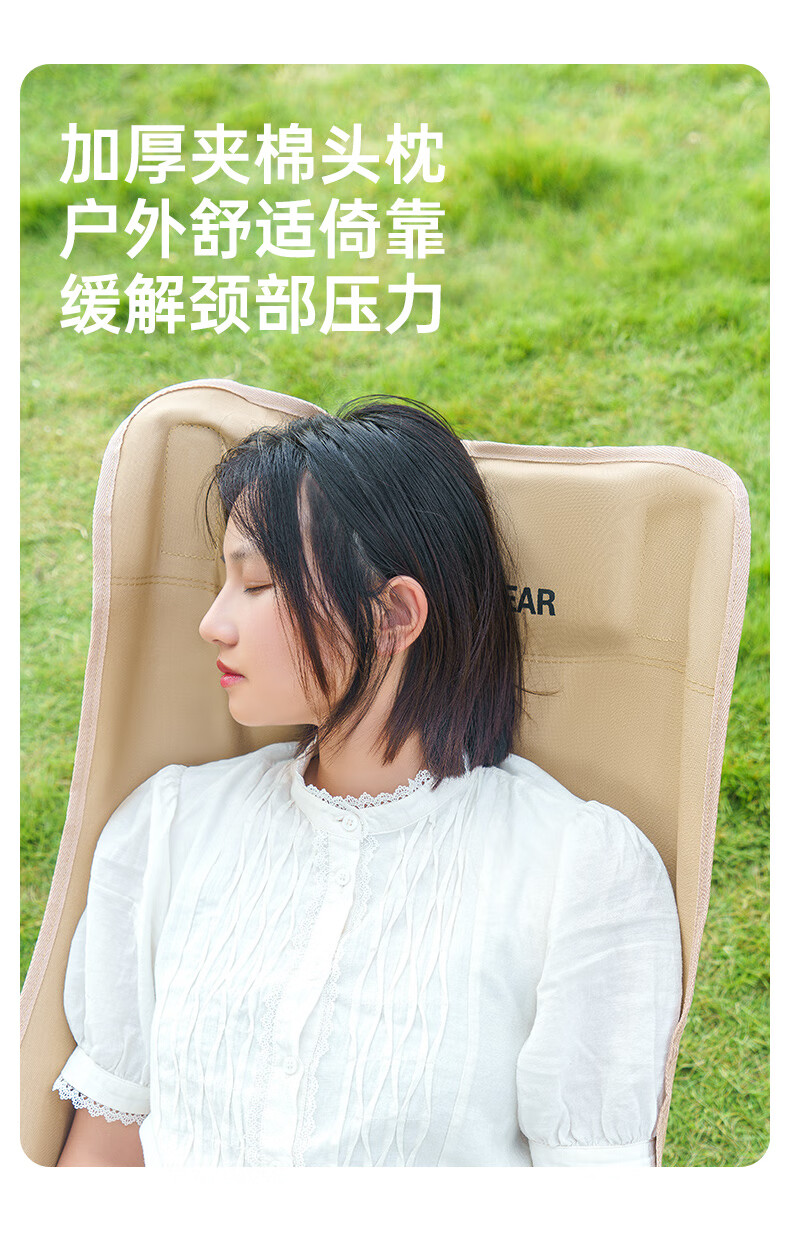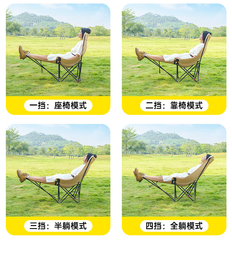 耐博佳月亮椅户外折叠椅露营椅子四档可调节钓鱼凳野餐高背躺椅沙滩椅 四档脚托-坐躺两用-软包坐垫【升级款细沙黄】