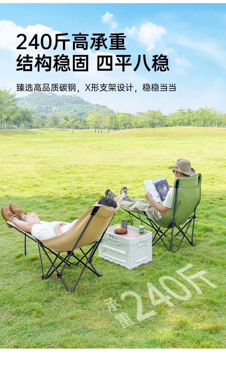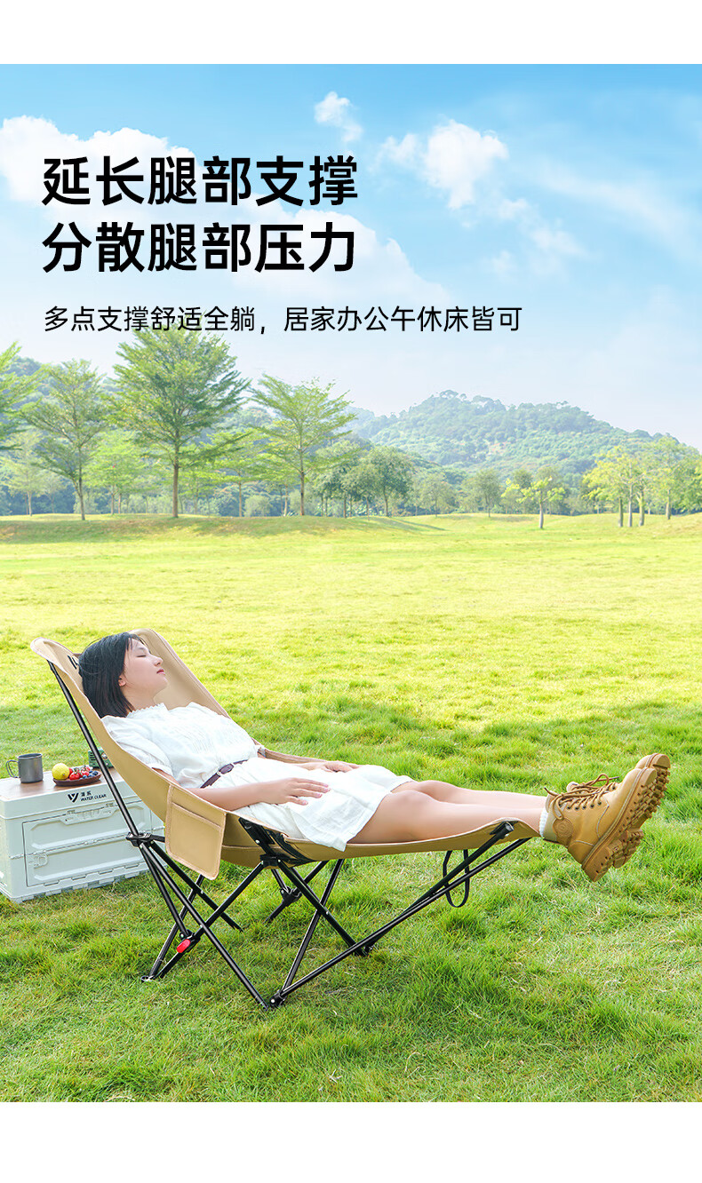 阿尤布户外露营折叠椅躺椅午休椅可坐可躺可睡承重500斤加厚便携 绿色带腿托