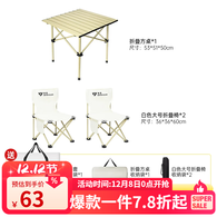 清系户外折叠桌便携式露营桌子野餐桌椅套装野营用品装备蛋卷桌露营椅 加厚方桌三件套