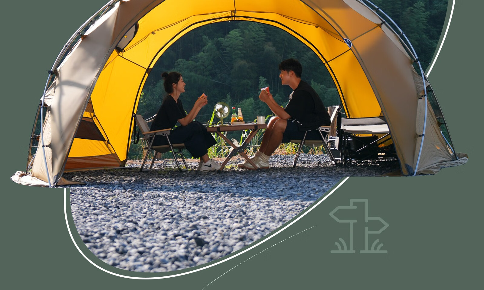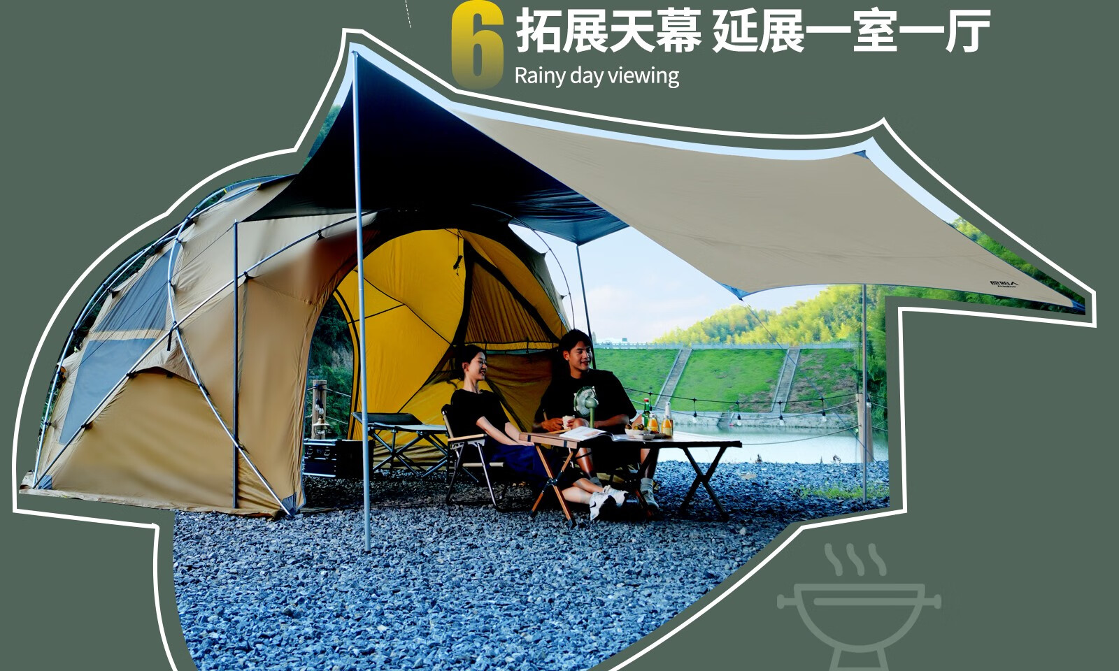 牧高笛(MOBIGARDEN)俊庭黑胶天幕 户外露营蝶形防晒遮阳布防雨大空间黑胶天幕 俊庭黑胶PO520天幕*1+月亮椅*4+碳钢蛋卷桌L套餐
