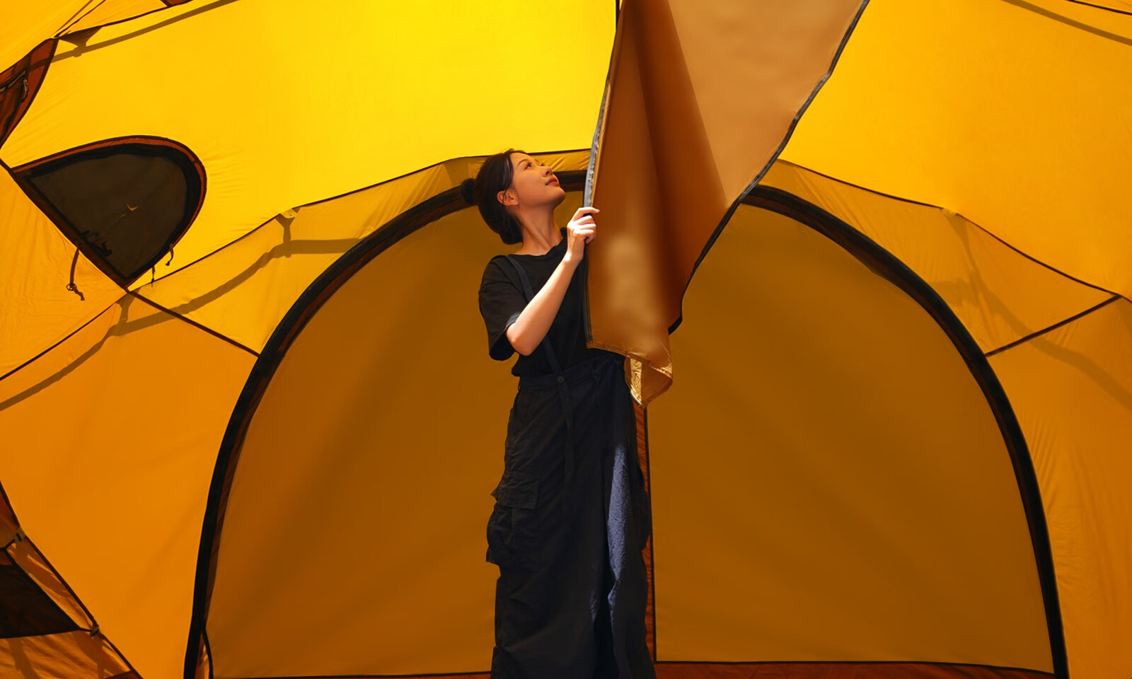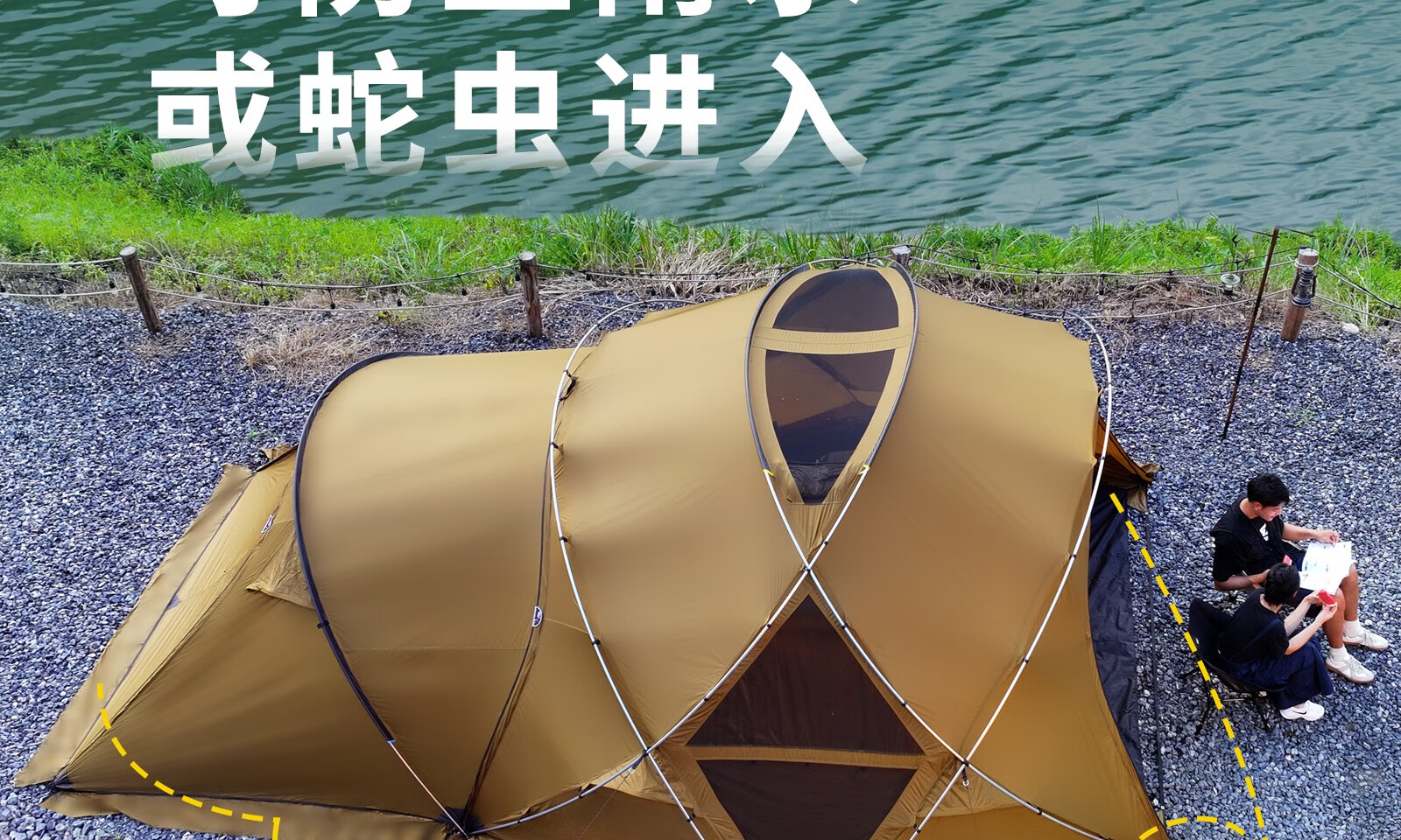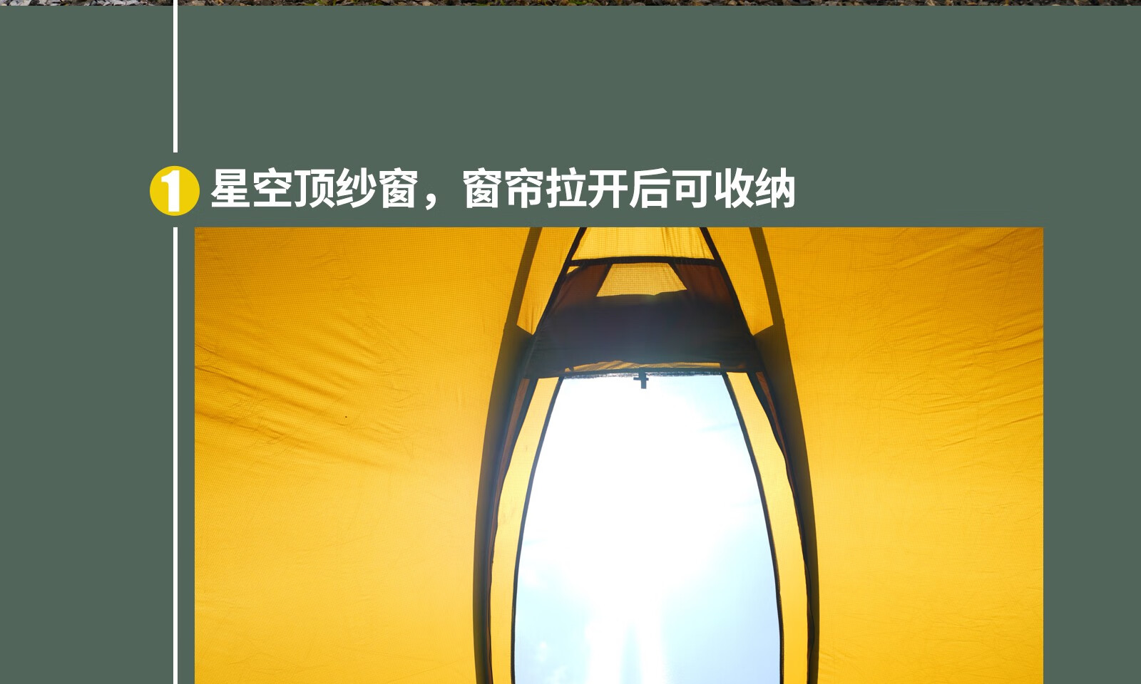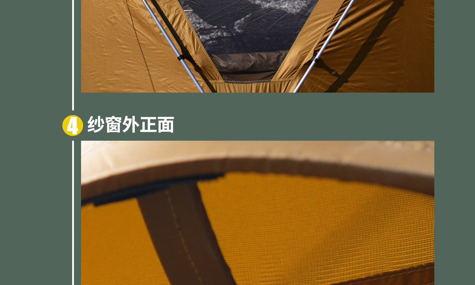 非常好看!!! 搭建不难,第一次开帐两个人搭,用了半小时,之后再搭应该能更快! 使用感受:中号帐两到三人使用够了,不压抑,很通风!这个颜色的光影非常漂亮!帐篷支起来后引来很多人围观拍照 容纳人数:2~3人 透气效果:非常好