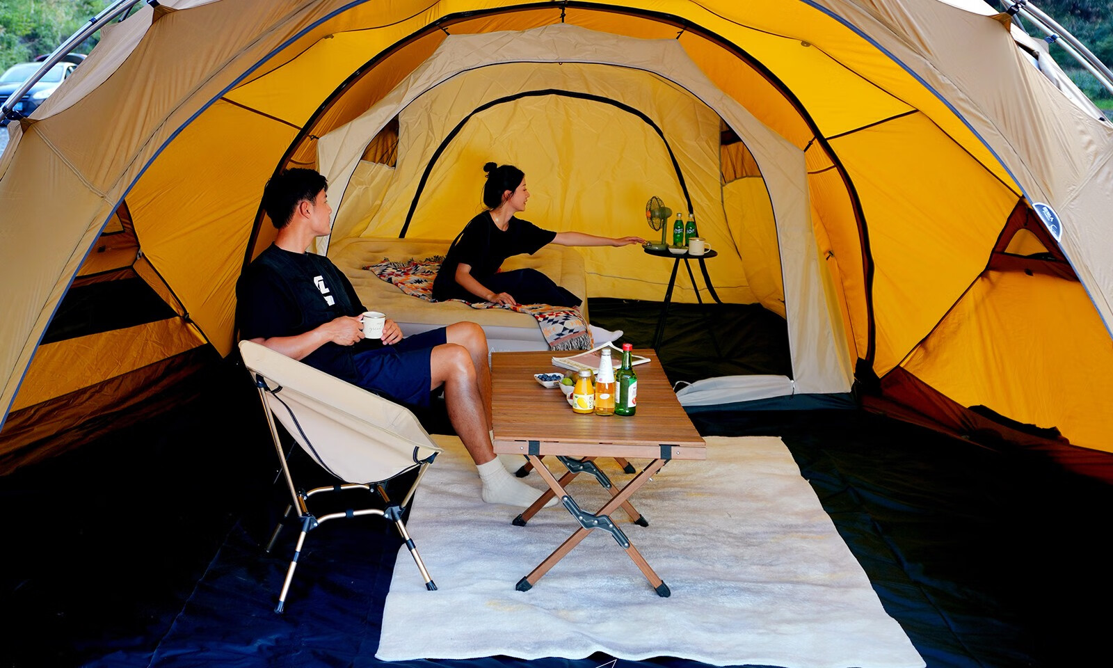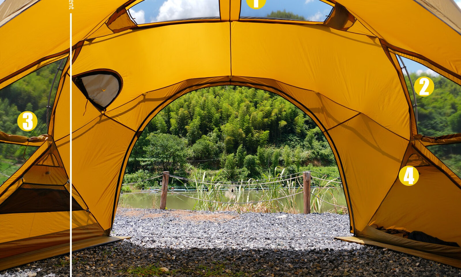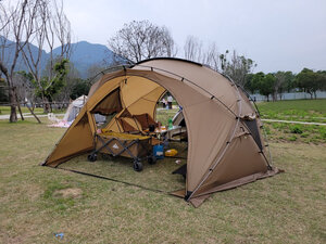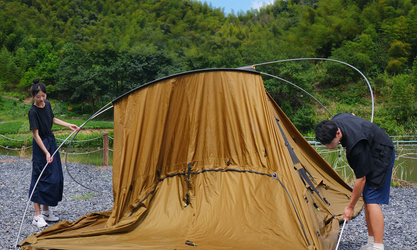 非常好看!!! 搭建不难,第一次开帐两个人搭,用了半小时,之后再搭应该能更快! 使用感受:中号帐两到三人使用够了,不压抑,很通风!这个颜色的光影非常漂亮!帐篷支起来后引来很多人围观拍照 容纳人数:2~3人 透气效果:非常好
