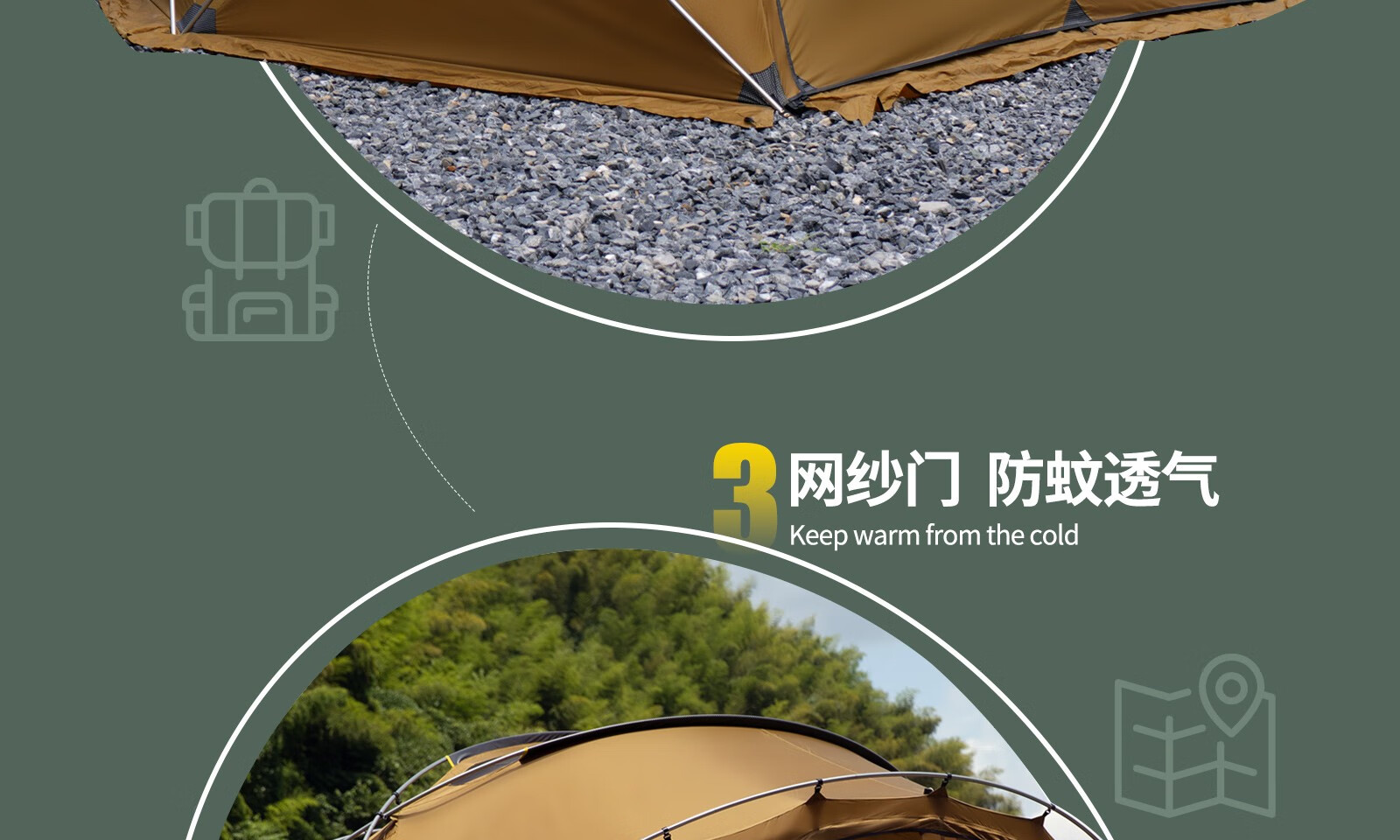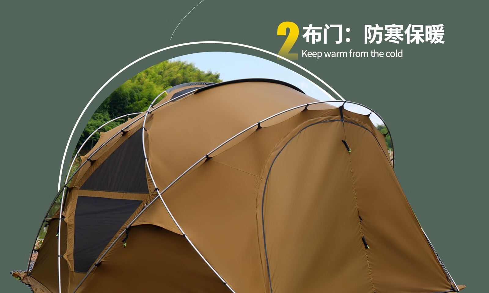 原始人帐篷户外球形帐篷球型穹顶四季加厚防风防雨野营露营装备 【沙漠黄】海王星三代中号含顶盖