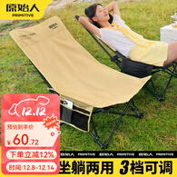 原始人躺椅户外折叠椅露营椅子便携式月亮椅办公室午休沙滩椅钓鱼 卡其【三档可调 坐躺两用椅】
