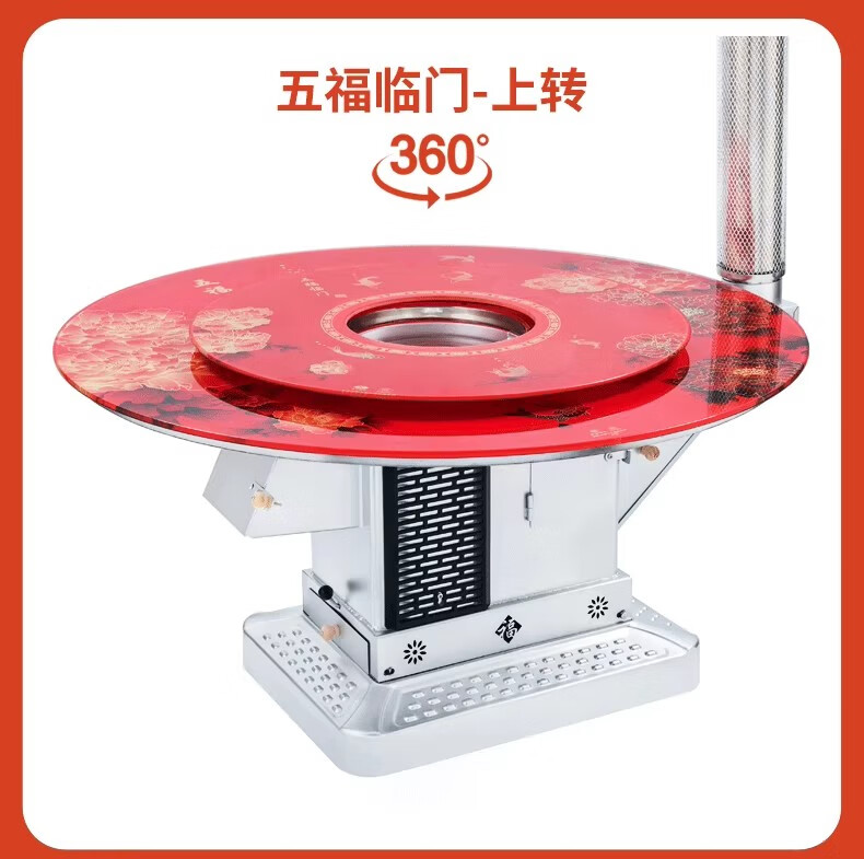 能师傅【送货上门】气化炉家用室内烤火炉柴煤两用节能无烟柴火炉灶农村 1米防爆玻璃桌面【4-5人 柴煤两用 】