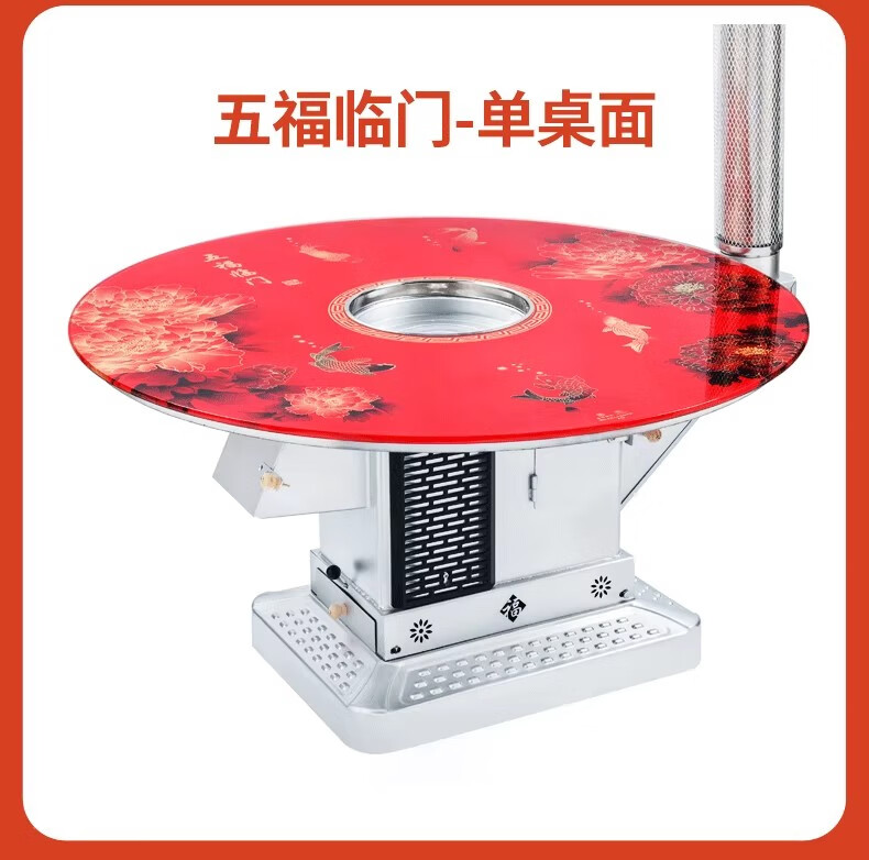 璞灶旺回风炉农村家用取暖柴火炉煤火炉柴煤两用炉多功能烤火桌节能取暖 0.8米钢化玻璃桌面 柴煤两用炉