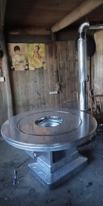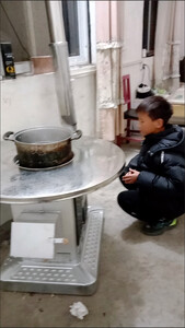 璞灶旺冬季柴火灶加厚加高农村取暖炉烧柴家用节能柴煤两用多功能回风炉 1米圆桌不锈钢(柴火炉)