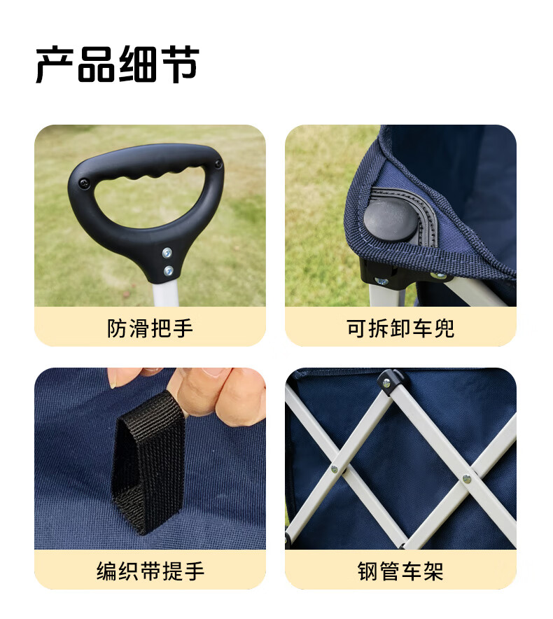 Tmz 户外露营推车折叠营地车儿童野营推车野餐车户外推车露营装备车 100L -2138WBB-带刹+后框-蓝色