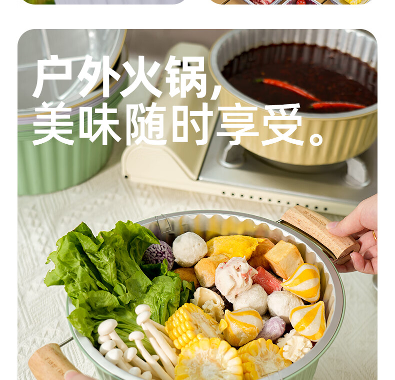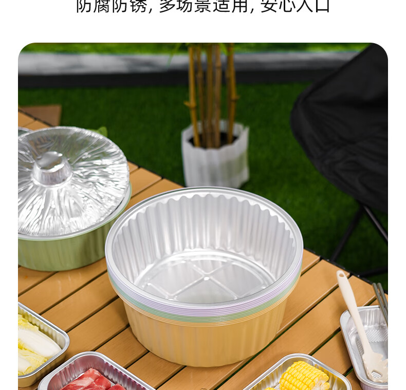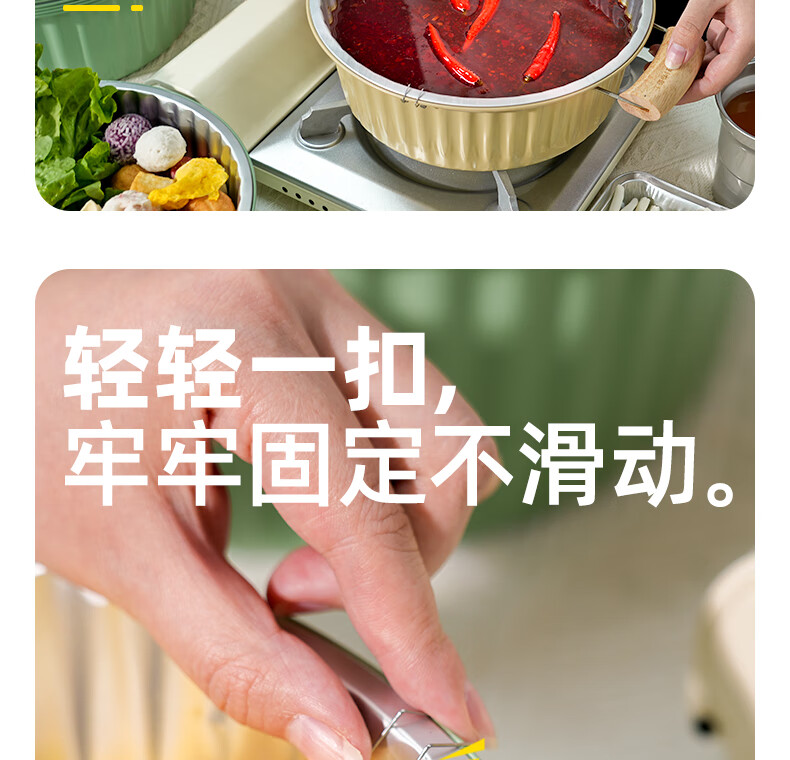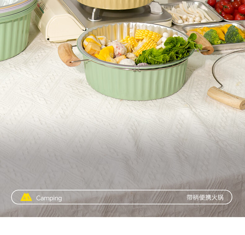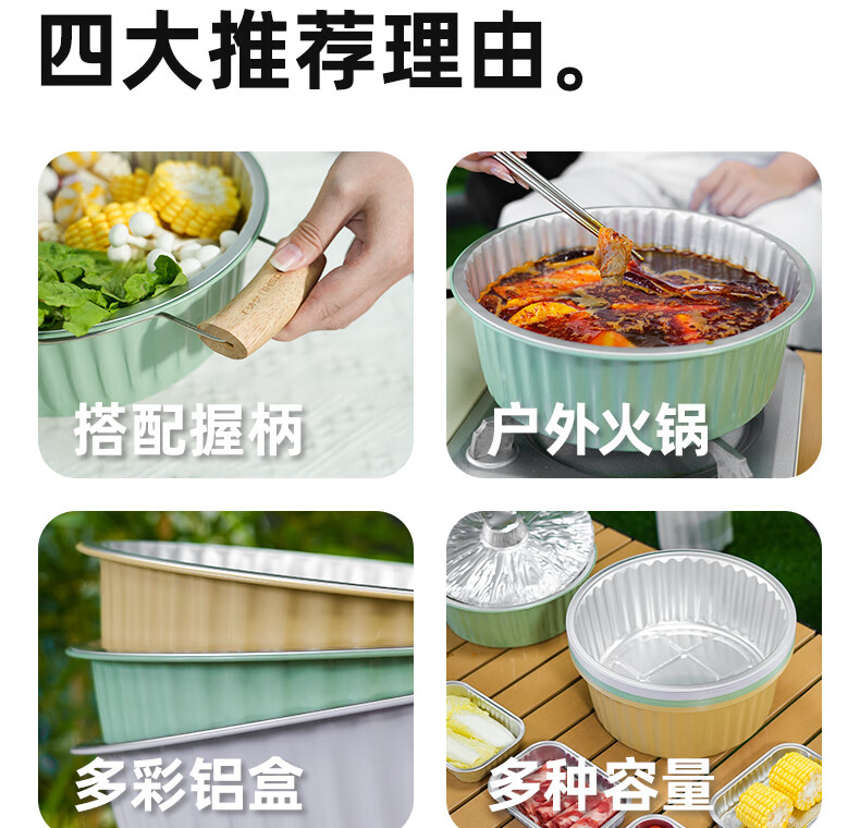 希箔士希箔士一次性锡纸火锅锅具带手柄户外铝箔锡纸锅露营家用卡式炉 3100薄荷绿10只+循环使用火锅环