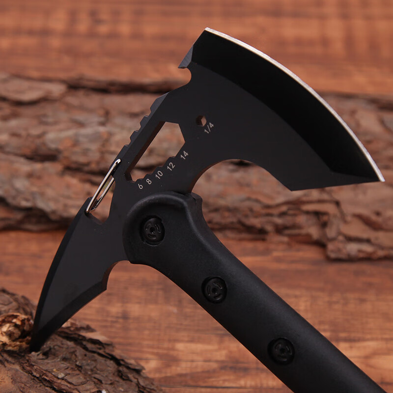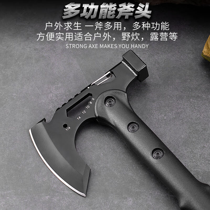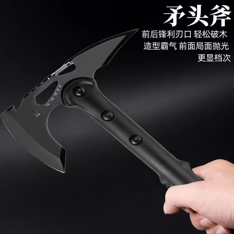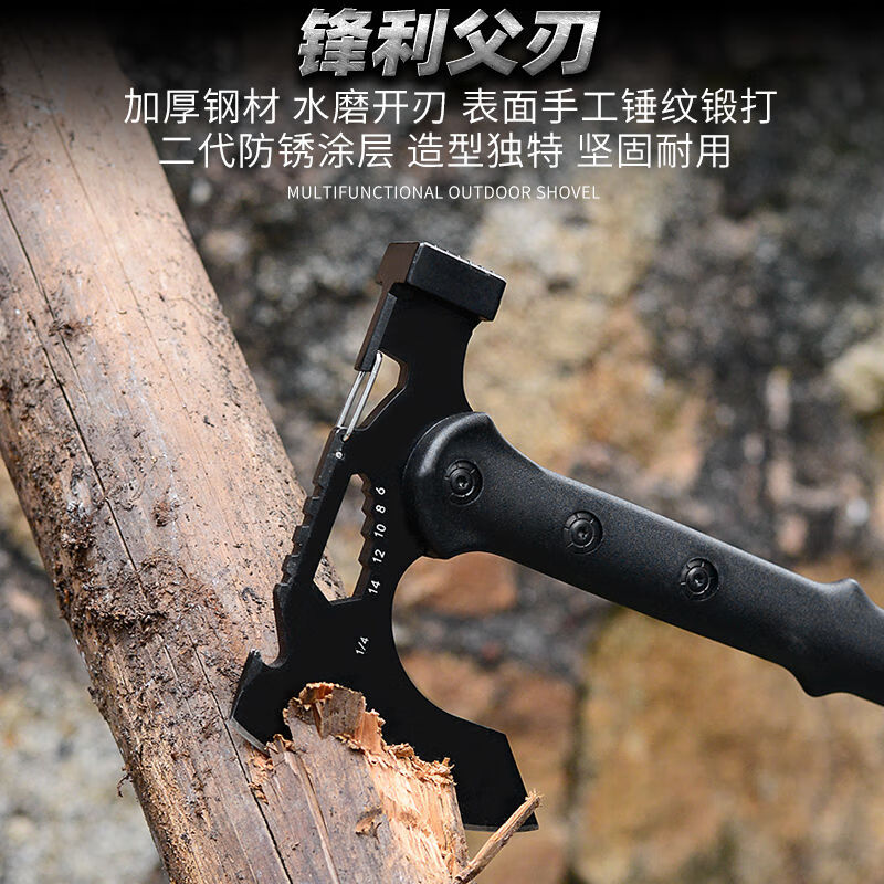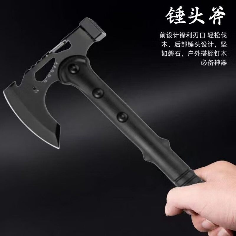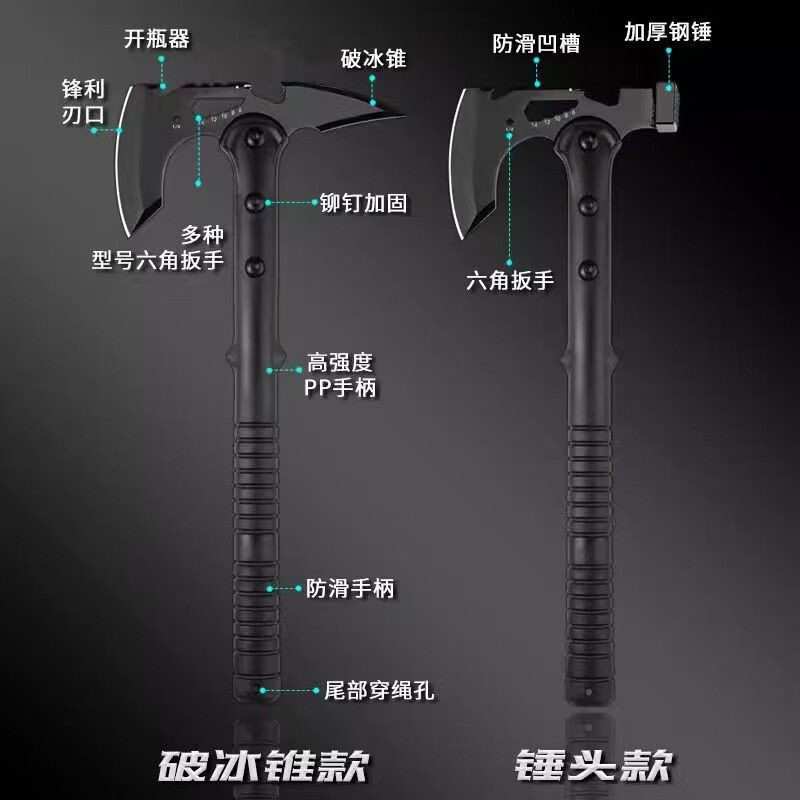 多功能野外求生战术开山斧户外露营消防军版救援中铲 黑色【破冰锥款开山斧】