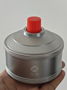 花二百多买这个反复充气罐的意义何在,直到我反复玩了好几回,暂定此物在一般生活状况下主要就是以玩物存在,还是尽量把控自己不要露营丧志吧。包装上有两个重量标识,我称出的是445g,用柯曼自家的导气阀,采用冷藏和升温造成的温差并充气途中泄气的规范操作标准,用了一个220g的卡式长气罐,充入90多克;随后又直接把长气罐与tc35嘴对嘴充了不到十秒,结果最后称重差为123克,即使计量器有10%的误差,充气量也已达产品标称了。另外,长气罐的安全帽也能完美卡在tc35出气口上,尽管这样会增加一些体积