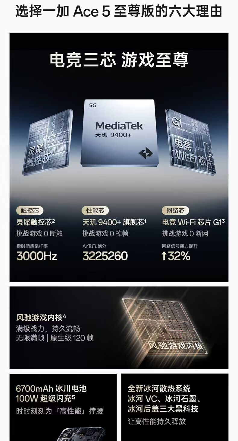 一加Ace 5 至尊版 天玑 9400+ 风驰游戏内核 电竞5G新品展机手机 清风蓝 12GB+512GB 单机+第三方充电器+店保一年