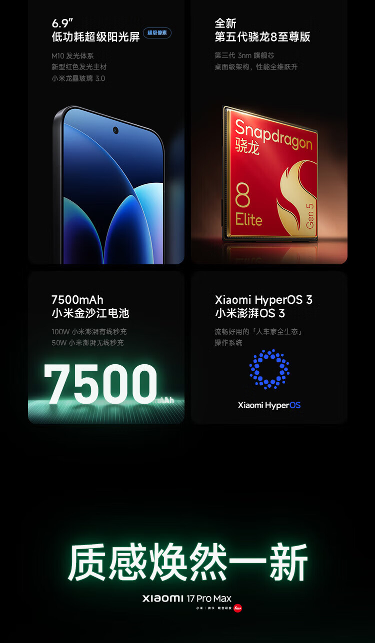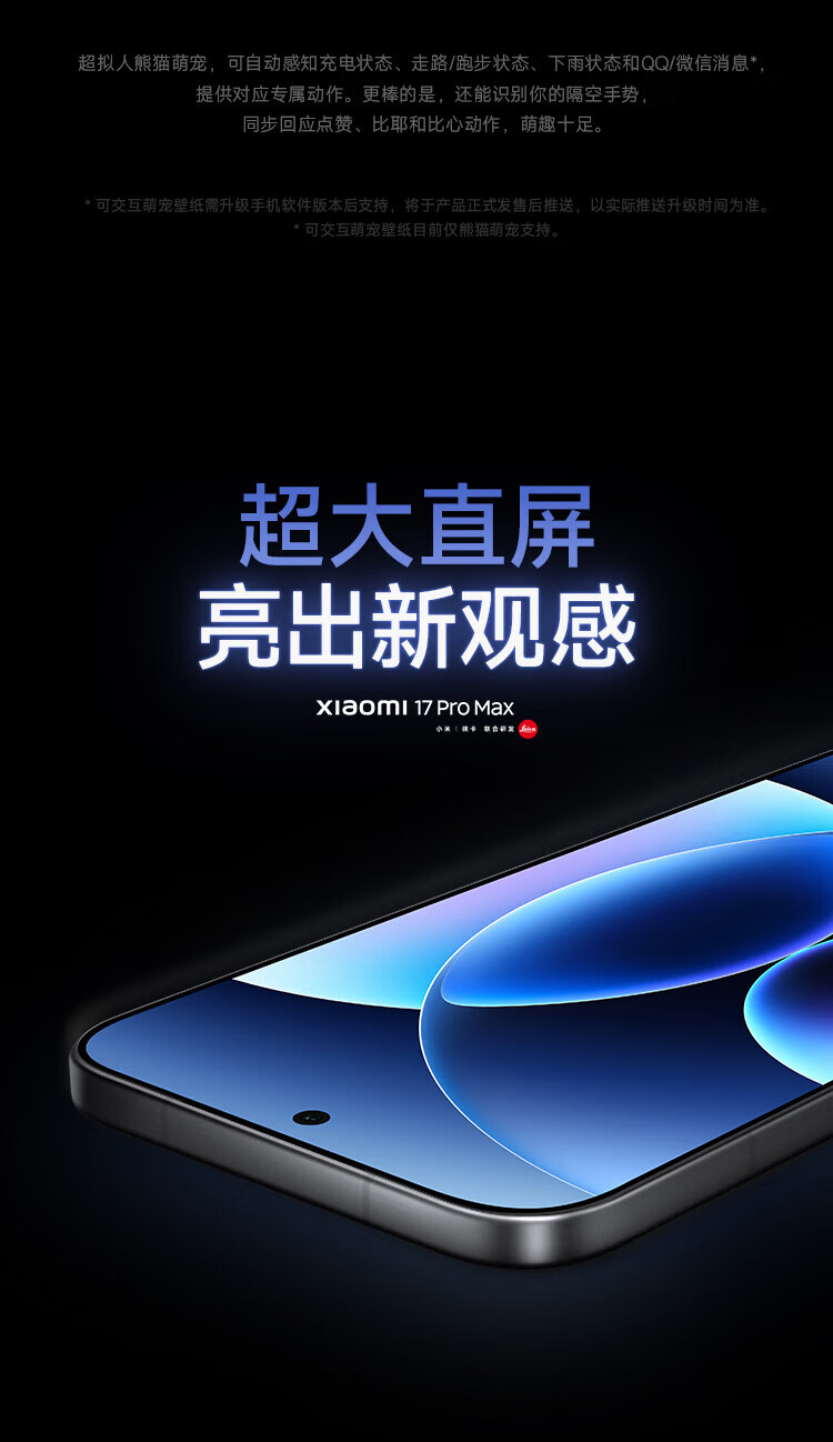 小米(MI)17 Pro Max 妙享背屏 第五代骁龙8至尊版 7500mAh小米金沙江电池 新品5G手机 黑色 16GB+1TB 官方标配