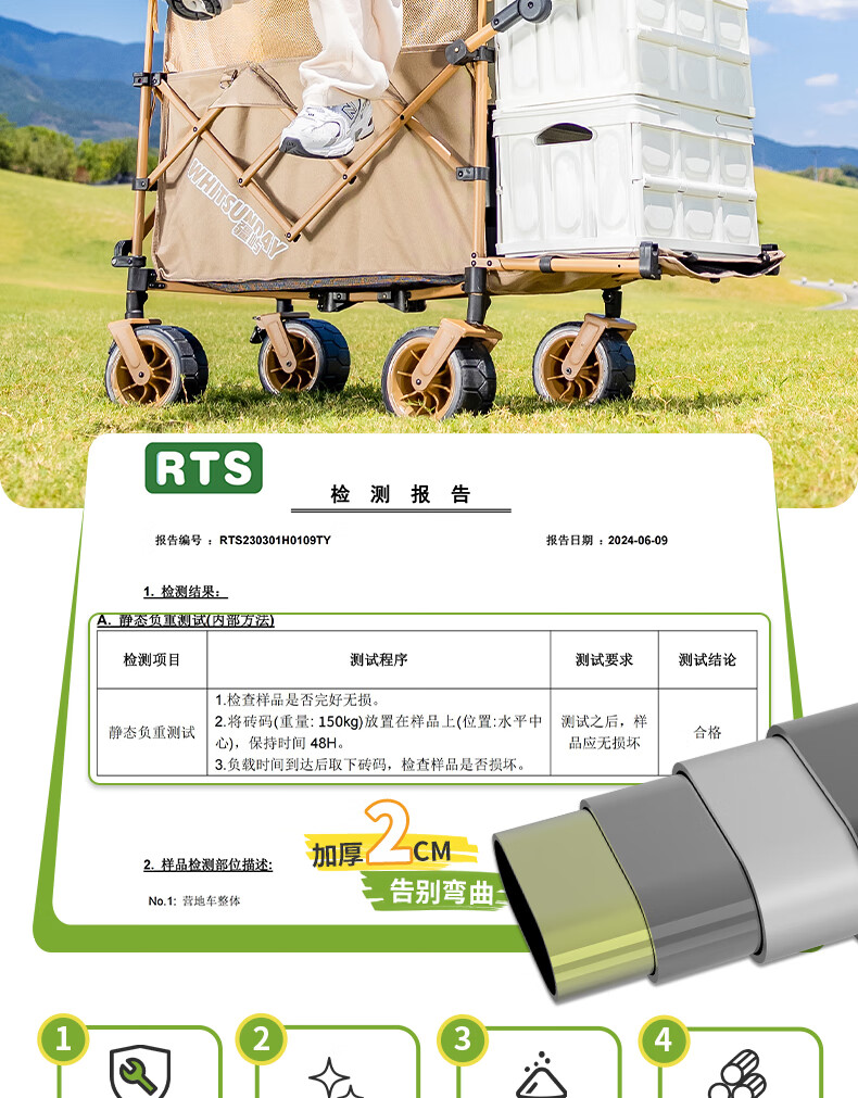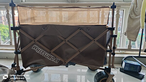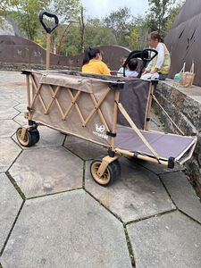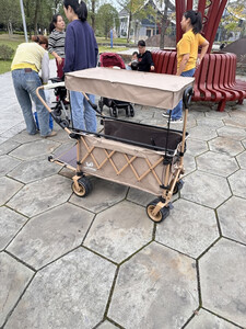 露营车质量很好,非常有重量,架子都是铝合金,非常结实,轮子大非常稳,用来遛娃拉东西很实在,不用担心会变形!这是一款值得推荐的车!
