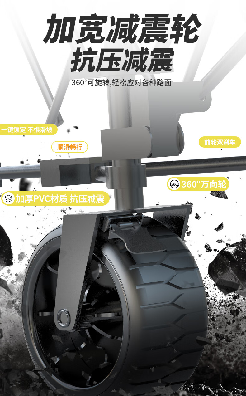 收纳折叠方便,轮子非常顺滑,拉起来轻松省力。车架看起来也很结实,应该非常耐用。轮子超大推起来很平稳,还有这个配色是我最喜欢的,比别人的黑白配色好看多了,非常亮眼,走在路上好几个人买问链接了。