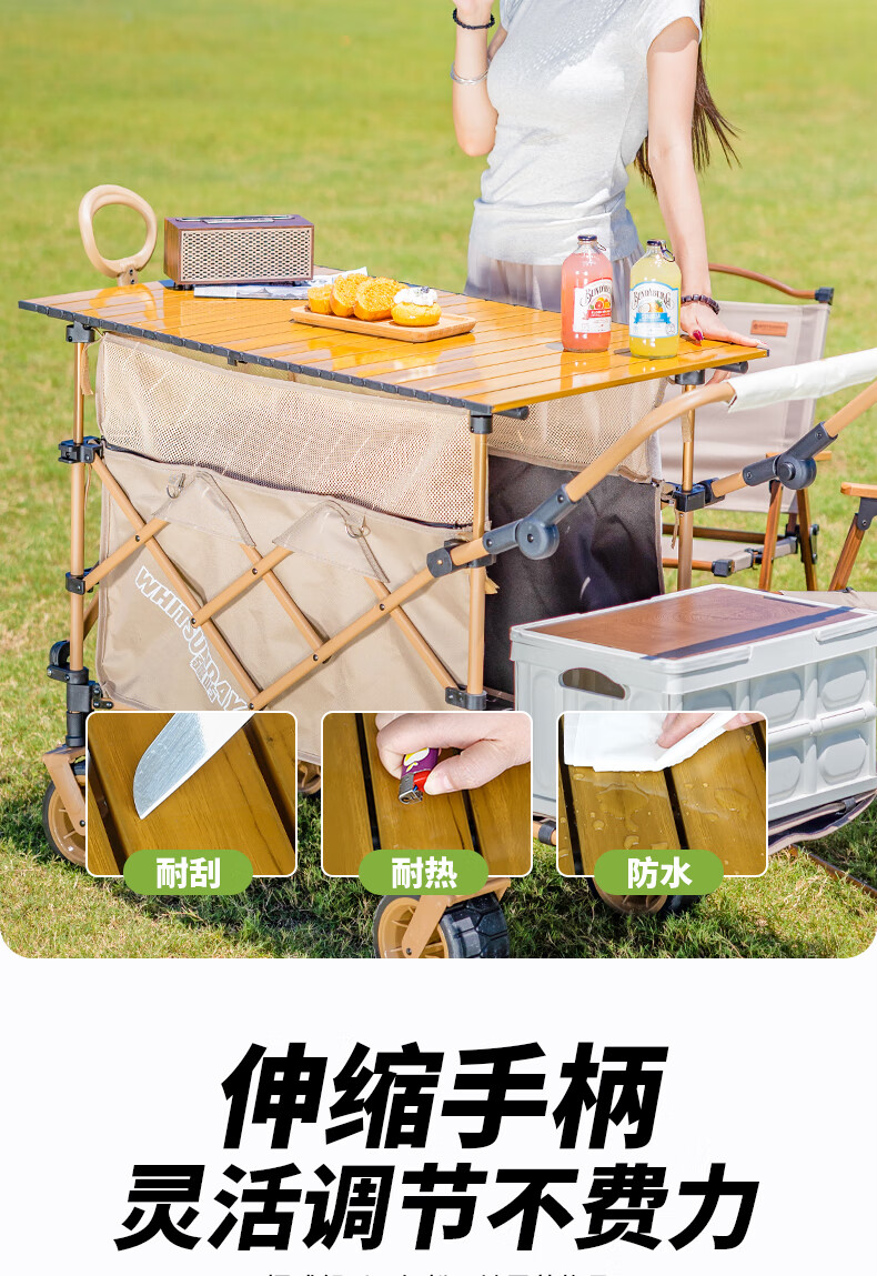 这款露营车简直超出了我的预期!首先,它的材质坚固耐用,框架结实稳固,让人在使用过程中感到十分安心。 容量非常大,能轻松装下我们一家露营所需的各种装备,帐篷、睡袋、桌椅等等,统统不在话下。而且,它的折叠设计十分巧妙,操作简单方便,不占空间,无论是收纳还是携带都毫无压力。