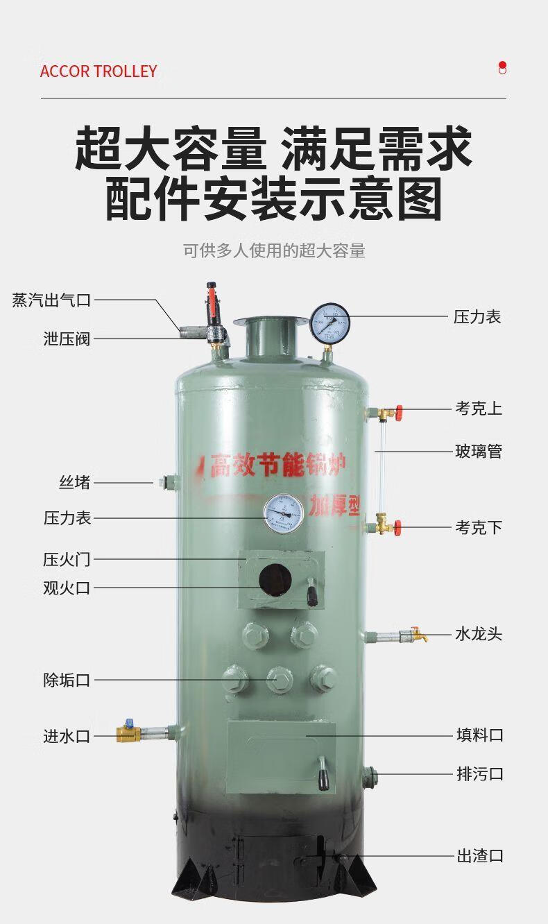 加厚40型柴煤两用炉太实用了!材质厚实抗造,做工扎实无瑕疵,柴煤切换自如,不管是烧柴还是燃煤都高效。升温超快,蒸汽量足,餐饮店熬汤、做豆腐都够用,家用洗浴也能满足,无自动补水箱设计不占空间,操作简单,节能又耐用,性价比绝了!