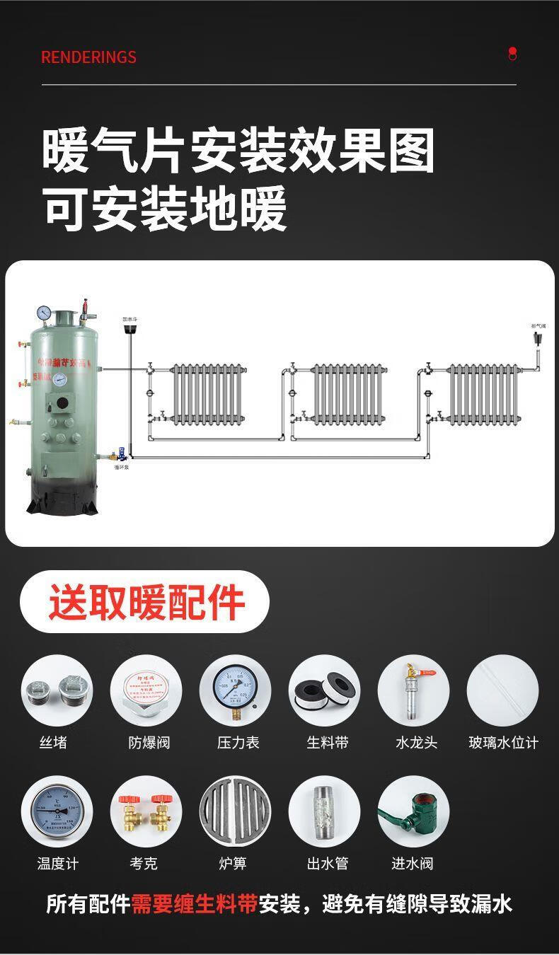 锅炉柴煤两用家用热水洗浴酿酒做豆腐节能炉养殖蒸汽炉商用餐饮店 加厚50型小号-无自动补水箱