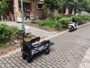 露营车轮子大,可以固定轮子不动,可以拉很多东西,再也不用手提肩扛了,折叠起来占地方也不大,拉杆也很灵活,成众多,很方便的。上面还可以铺个野餐桌,一个商品两种用途,很好,种的草终于拔了。