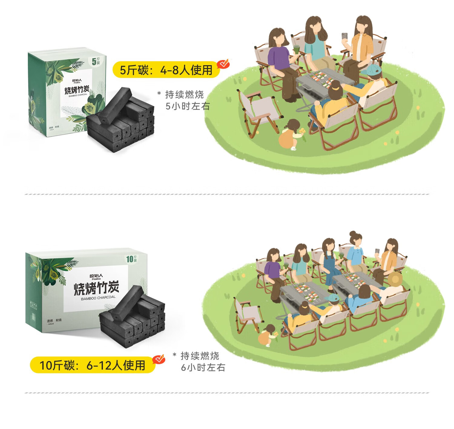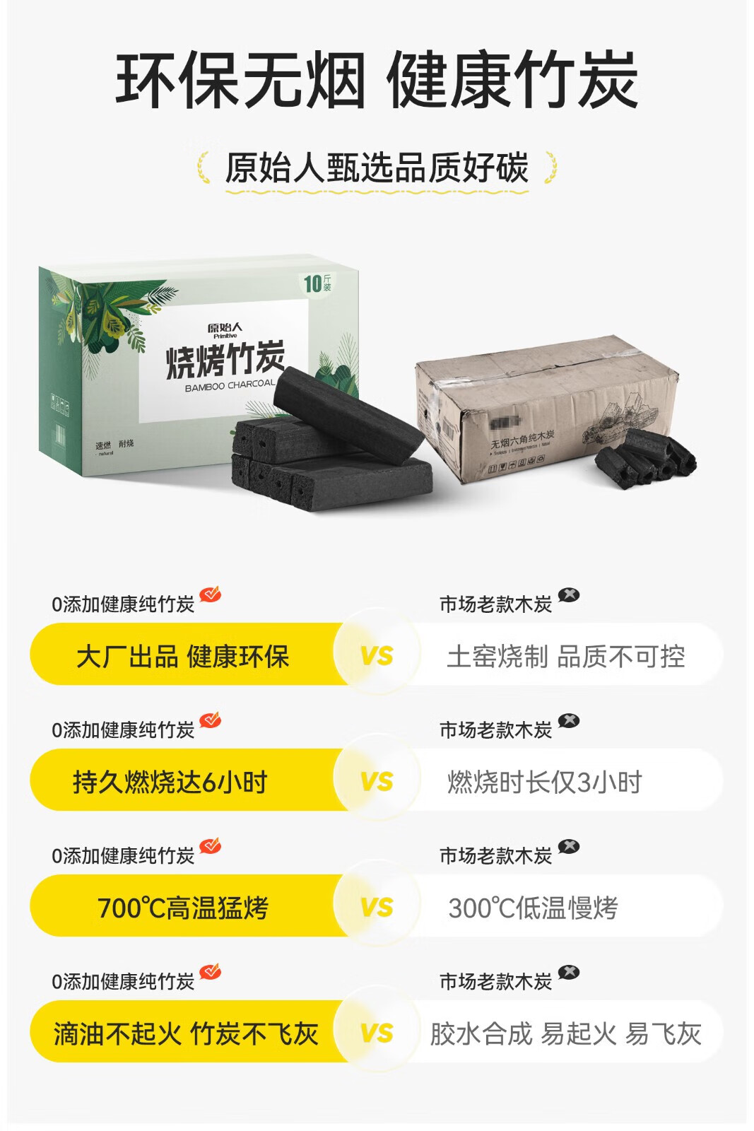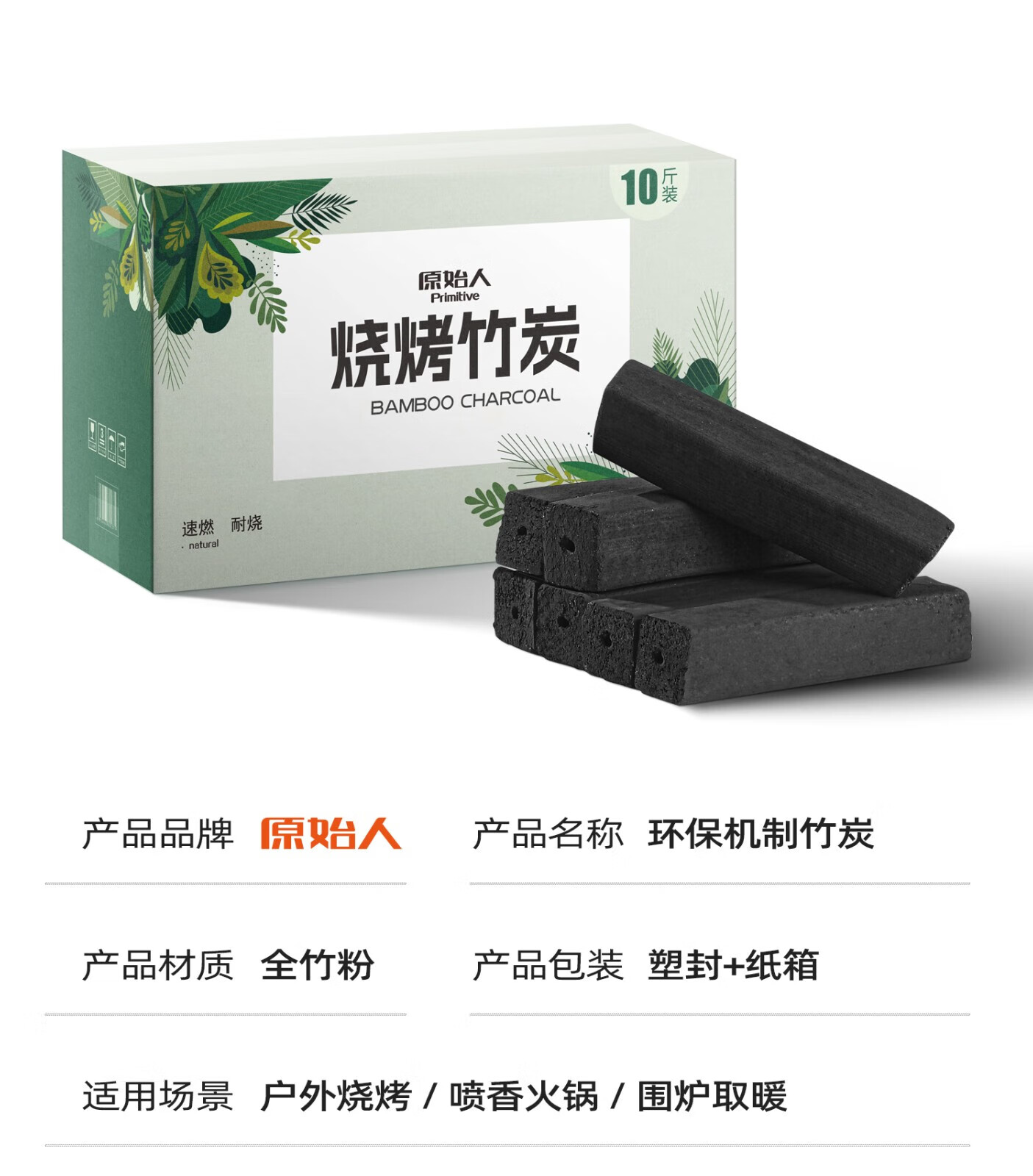 原始人烧烤竹炭木炭烧烤耐烧机制碳烧烤工具燃料 10斤装+引火块