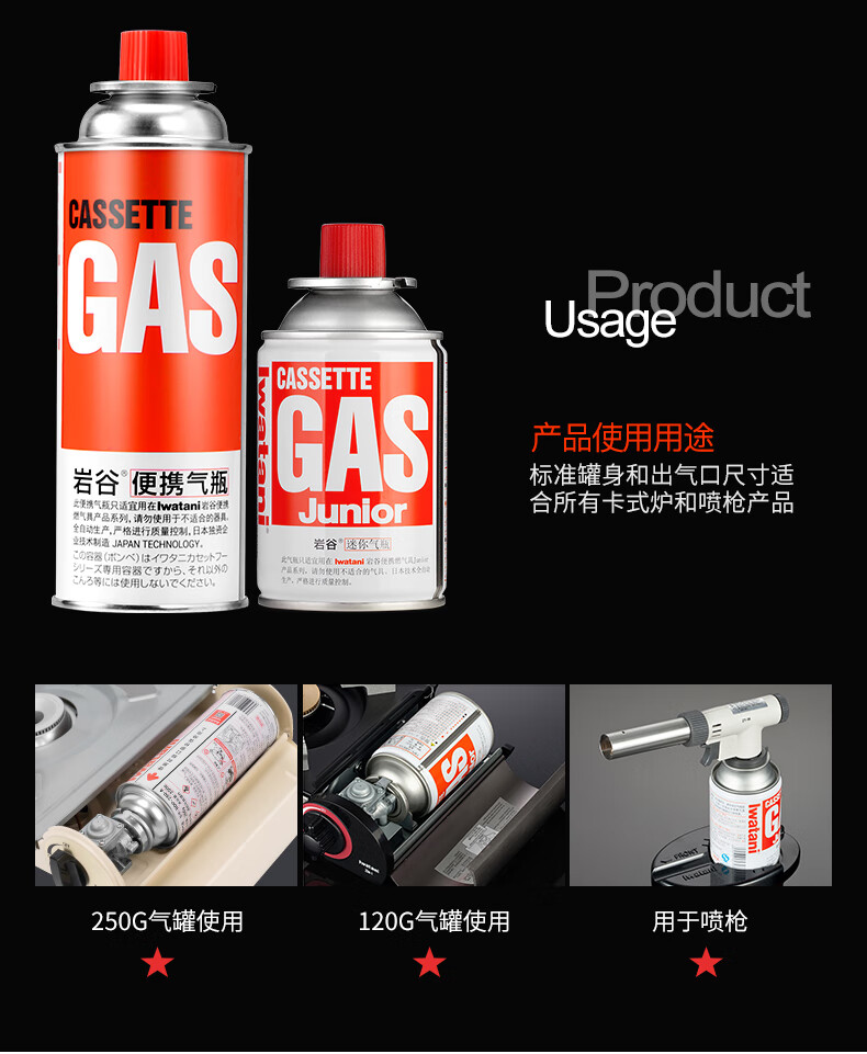 岩谷(Iwatani)便携卡式炉气罐户外卡式防爆燃气罐液化气瓦斯丁烷气瓶 岩谷气罐250g * 2瓶