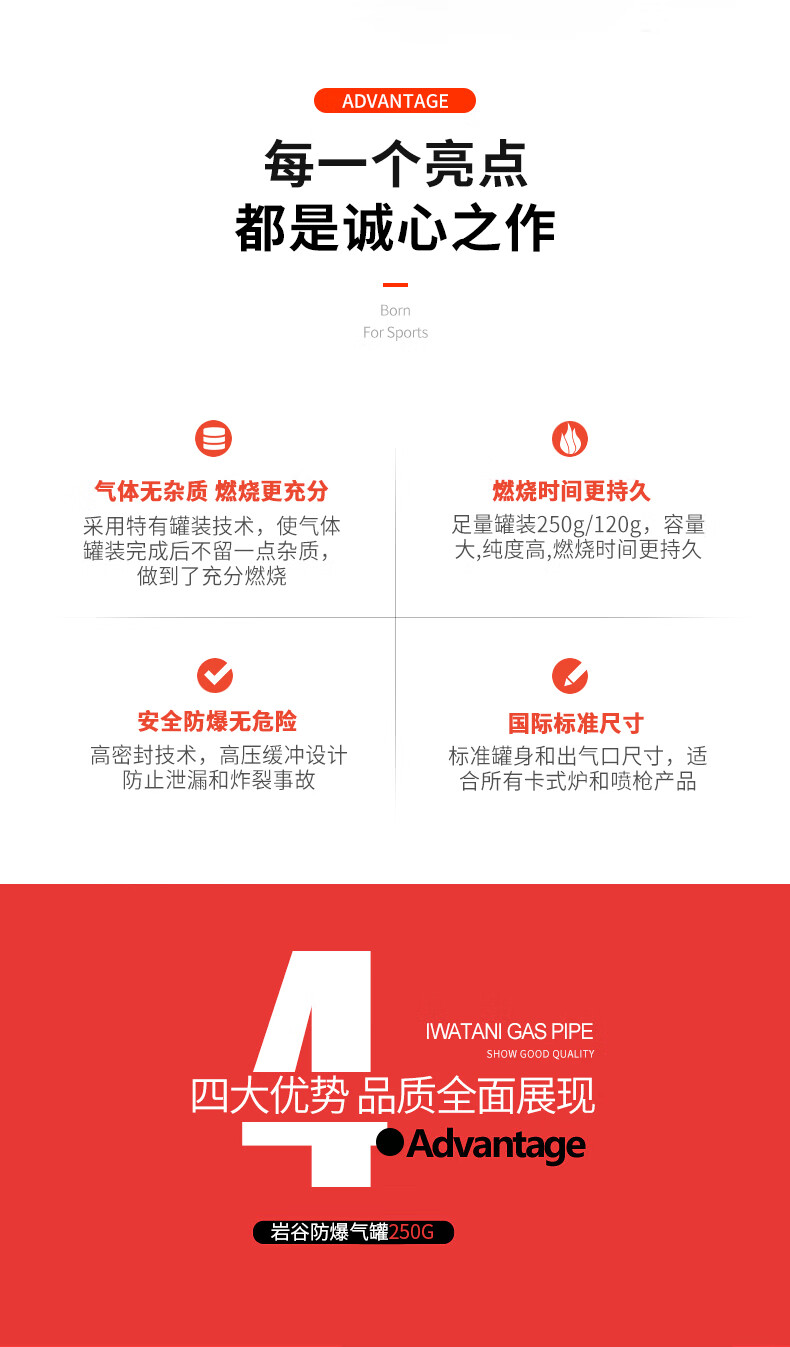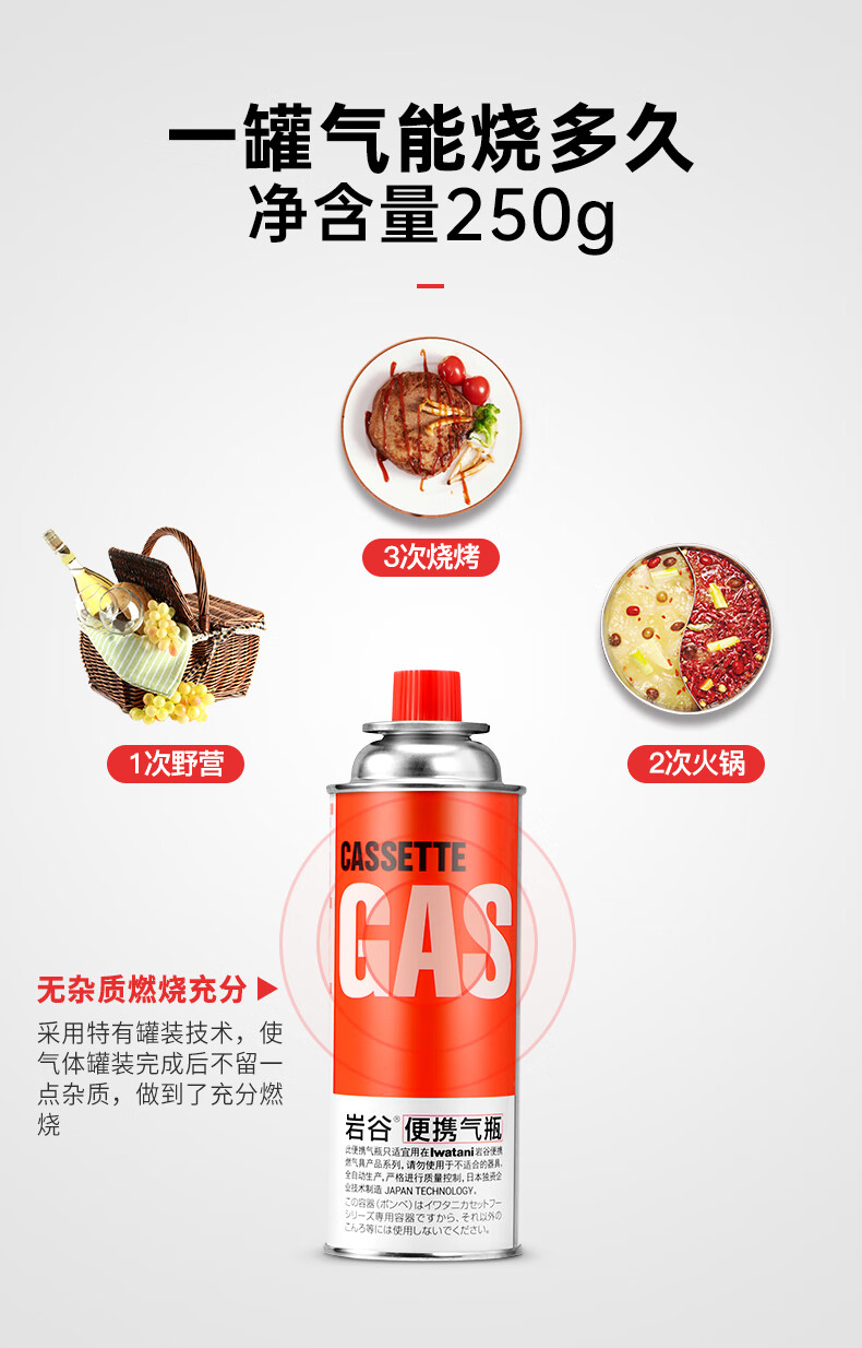 好炉用好气,原装炉子肯定要配原装气体 使用岩谷卡式炉和便携气瓶已经很多年,这次更新设备在箭兰专营店一站式购齐,不论是卡斯炉还是气体,物流包装的测试都非常的棒,气体无异味,燃烧稳定,非常不错的,值得推荐。