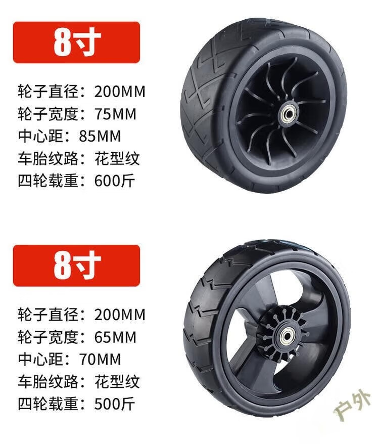 DUTRIEUX露营车轮子户外手推车野营车7寸8寸橡胶轴承轮轮胎营地车配 5寸窄轮12.5_M