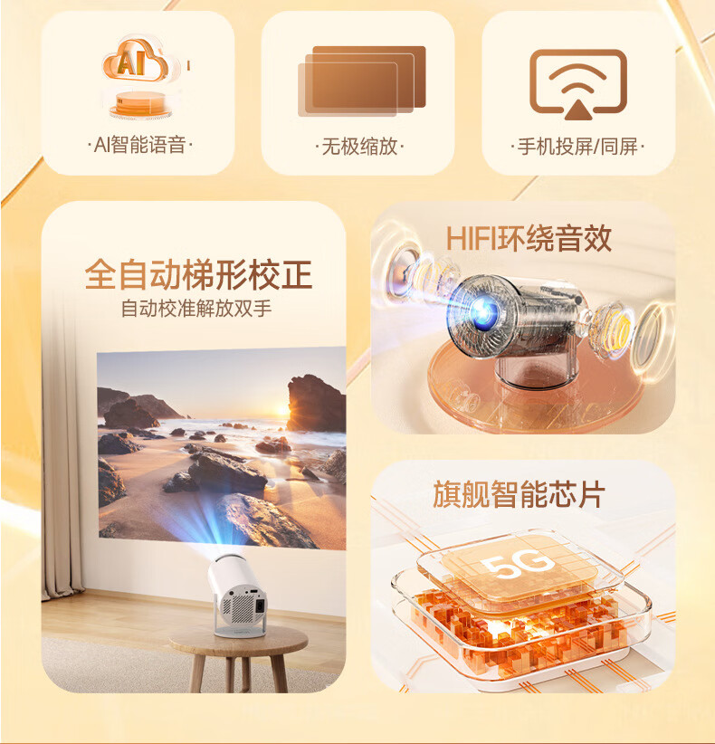 HY300pro便携式WIFI投影仪跨进搭载海外安卓系统家用投影仪720P HY300pro海外安卓款白色 美规[国内用户选用]