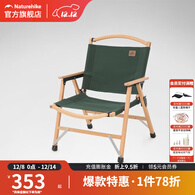 挪客Naturehike实木户外折叠椅便携式露营休闲椅野营椅沙滩椅 原木色-森林绿