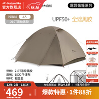 挪客云川2-3人黑胶帐篷超轻徒步帐篷轻量化防雨防晒户外露营装备 3人帐-浅咖棕-黑胶版