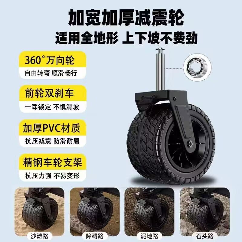 潮思汇户外露营地摆摊小推野餐车便携折叠推拉家用溜娃钓鱼车 10寸坦克轮【一对装】AA+ 无赠