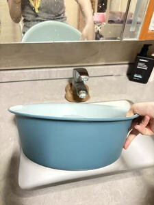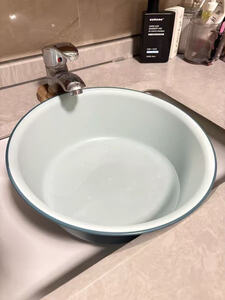 脸盆质量真不错,材质厚实没有异味。盆子大小适合放水池里洗衣服很方便,边边加高也不会溅出水来,推荐~