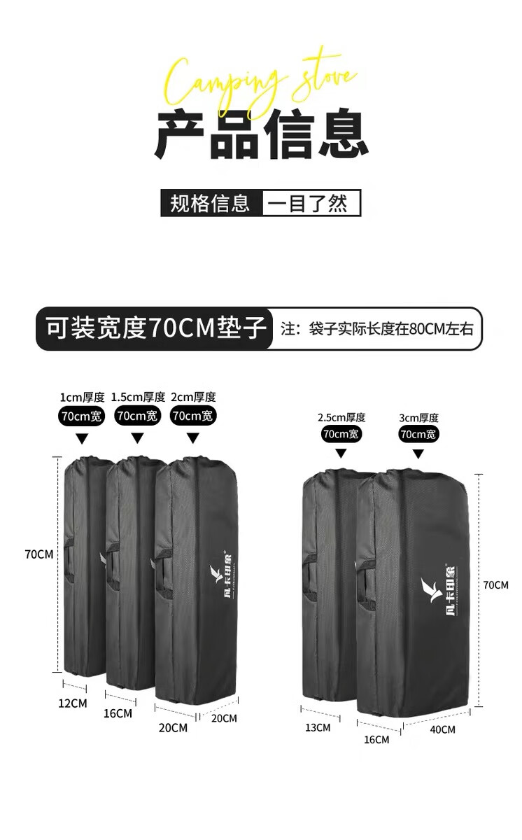 凡卡印象午睡垫收纳袋防潮垫蛋巢垫长条收纳包手提收纳袋抽绳钓鱼椅收纳 【70*20*18CM】收纳袋