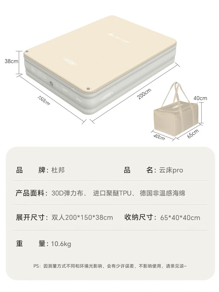 杜邦杜邦云床ProTPU拉丝充气床垫户外露营家用打地铺便携全自动气垫床 双人