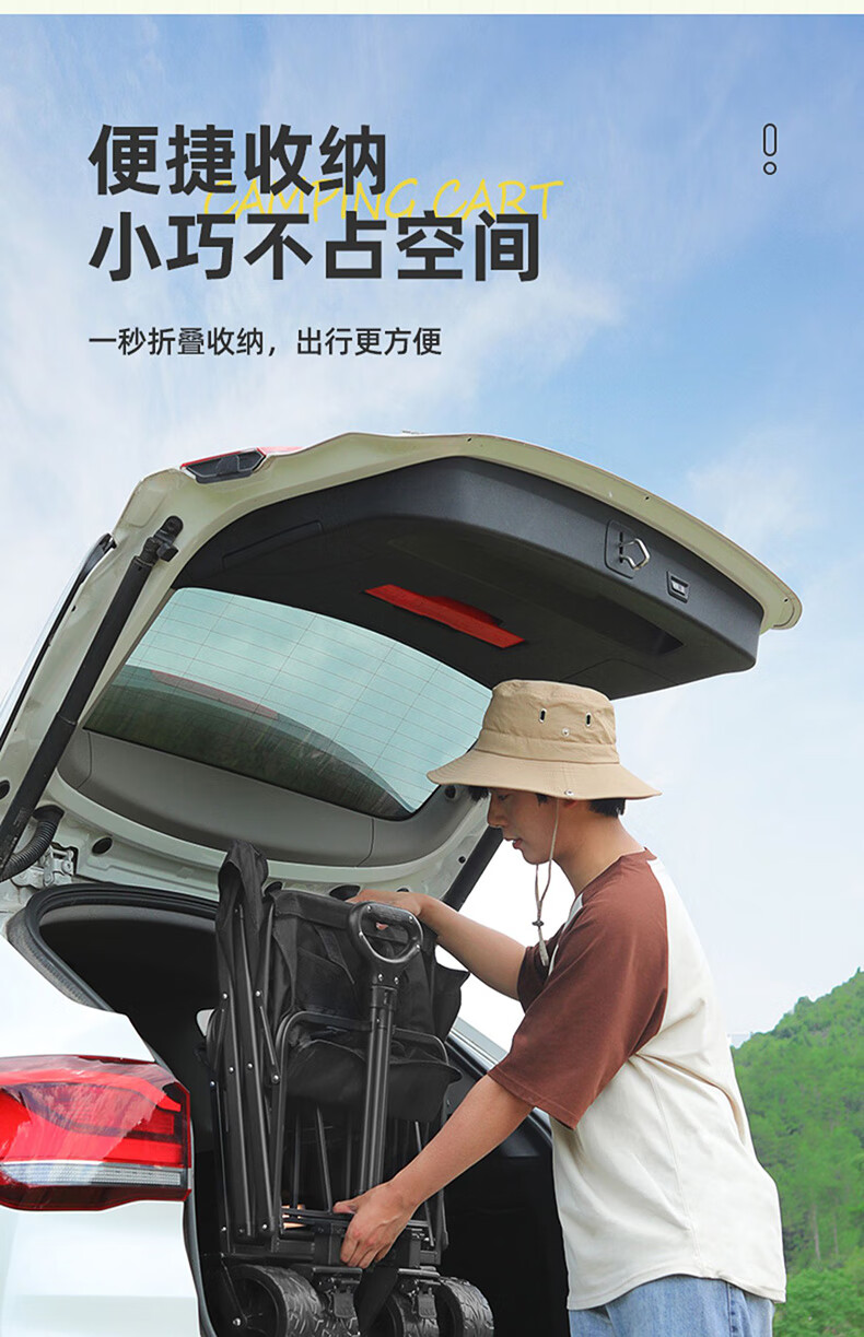 北乐户外露营推车可折聚拢叠摆摊推车野餐车拖车拉杆小拉车桌板营地车 【5寸标准款】+5寸桌板+黑色